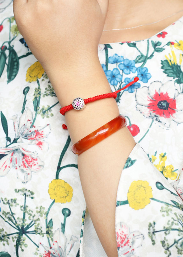Vòng tay thắt dây hoa đá thiên nhiên phối charm bạc | Ngọc Quý Gemstones |