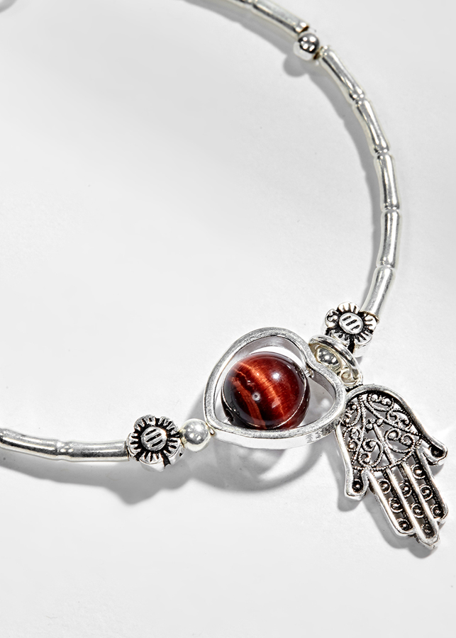 Vòng Tay Bạc 1 Hạt Đá Mắt Hổ Nâu Đỏ Phối Charm Bàn Tay Hamsa Bạc mang lại sự tự tin, dũng khí và giúp cho con người quyết đoán hơn trong công việc, đem đến sự thành công.