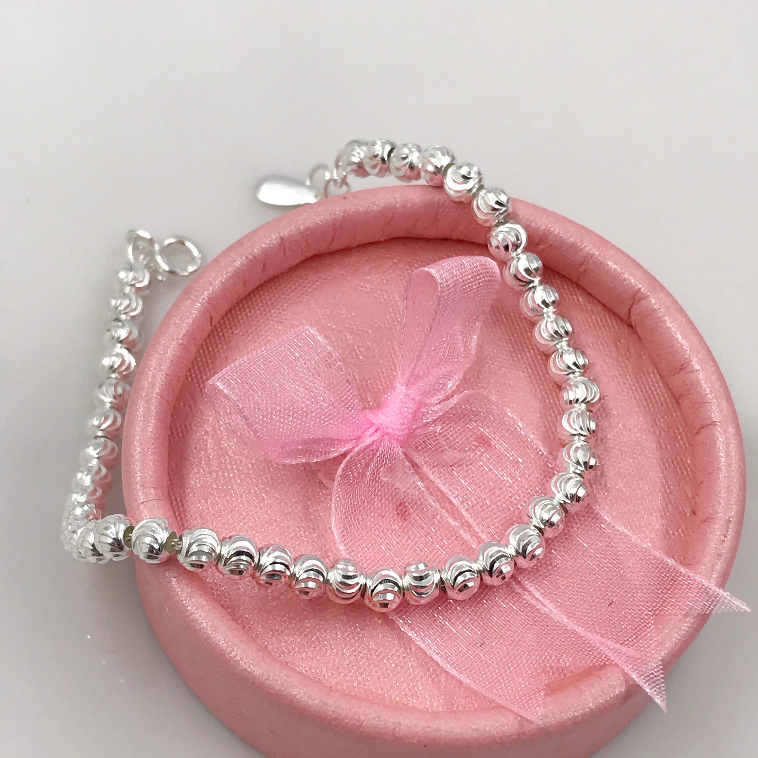 Là con gái, hẳn bạn luôn bị cuốn hút trước những bộ cánh thời trang và những đôi giày sành điệu. Tuy nhiên để làm hoàn hảo hình ảnh của mình trong mắt người đối diện, các bạn cần thêm những món phụ kiện bé bé xinh xinh để điểm tô cho vẻ ngoài thêm ấn tượng. Và hôm nay, S sẽ mang đến các bạn cơ hội sở hữu chiếc lắc tay rất dễ thương, được làm bằng bạc ta. Sản phẩm thích hợp với những bạn gái có phong cách dịu dàng, nữ tính.