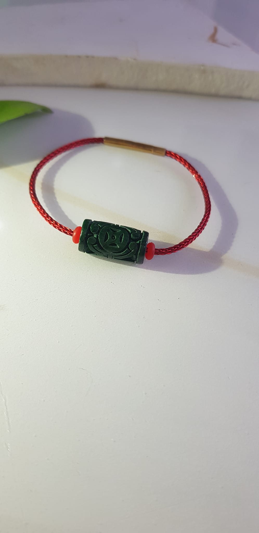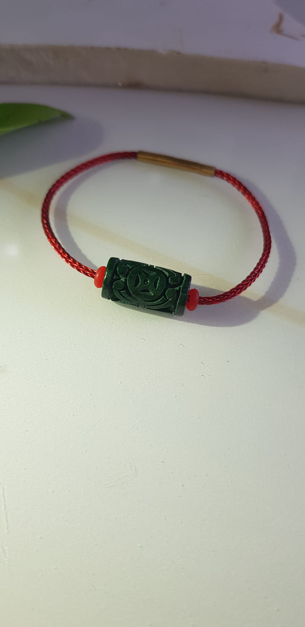✨Vòng tay charm Lu Thống Đồng Tiền Đẹp Đá Cẩm Thạch tự nhiên Xanh Đậm đẹp Dây Đỏ có khoen Hợp Nữ mệnh Thủy Mộc Hỏa ạ