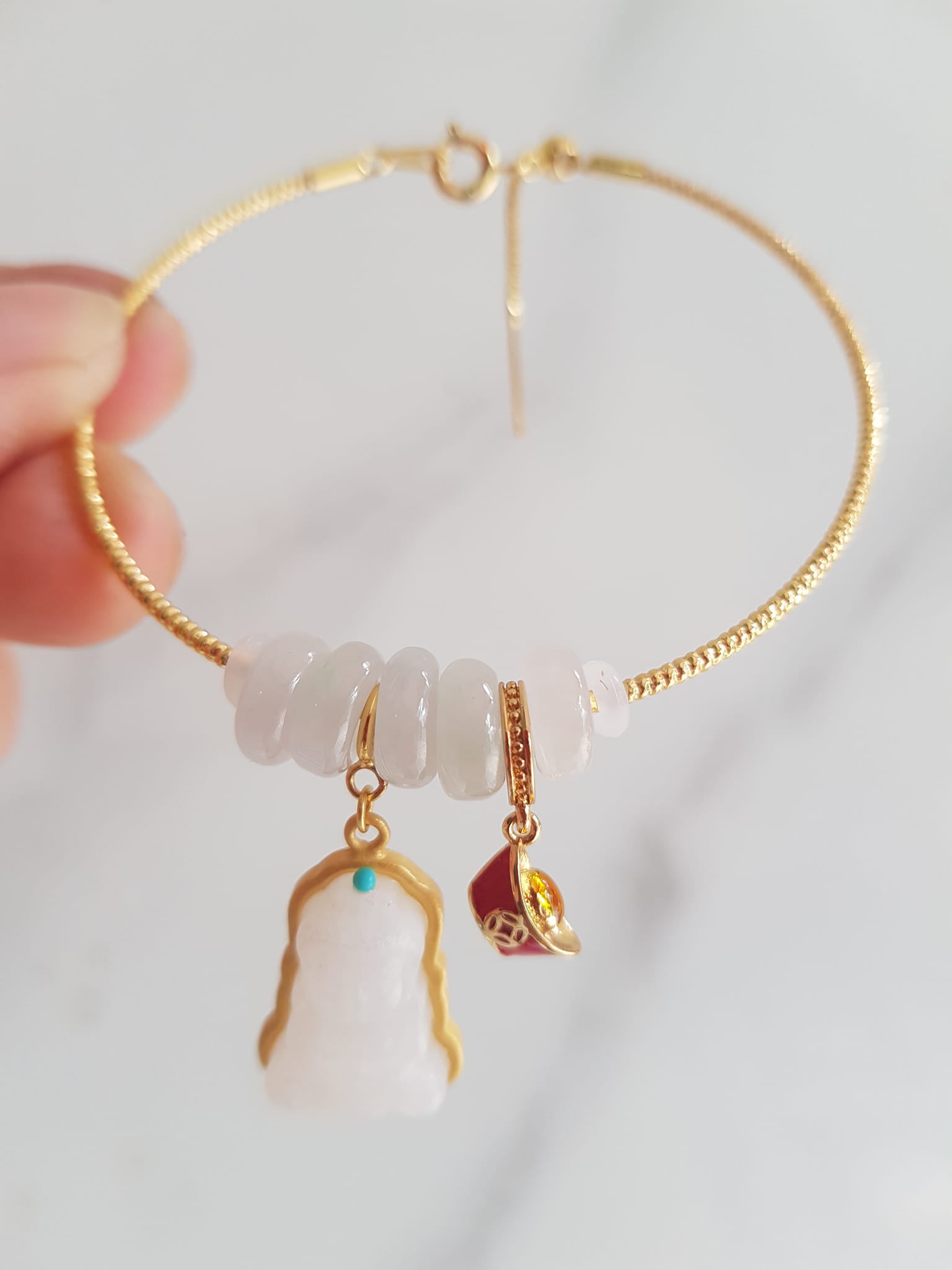 Phối mặt phật đá cẩm thạch trắng thỏi vàng đỏ may mắn vòng màu vàng rất xinh