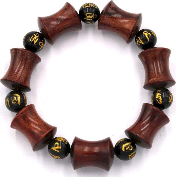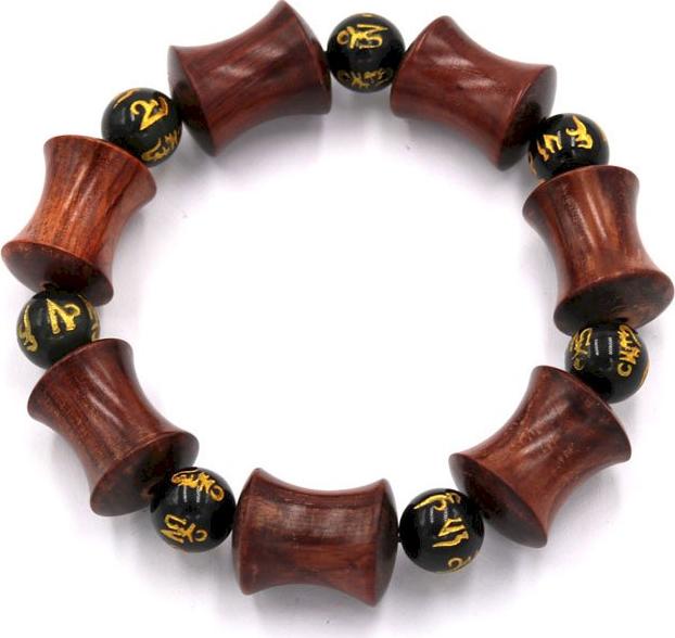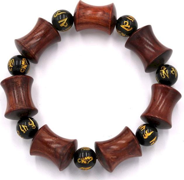 Kích thước : hạt gỗ hồng được khắc hình ống tre với kích thước 14mm x 20mm, kèm hạt đá thạch anh khắc Phật chú 10 ly, vòng chuỗi dài 210mm