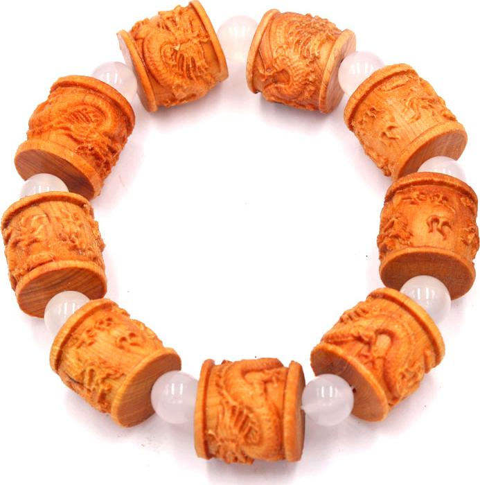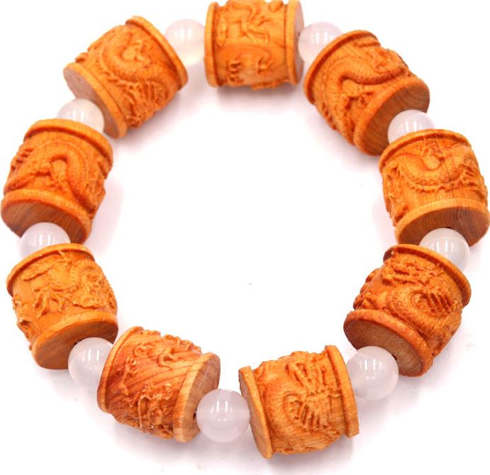 Kích thước : 9 hạt gỗ khắc hình trụ rồng 20mm x 20mm, đá thạch anh : 8 ly, vòng chuỗi dài 252mm