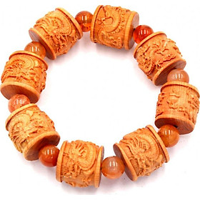 Kích thước : 8 hạt gỗ khắc hình trụ rồng 20mm x 20mm, đá vân rồng : 10 ly, vòng chuỗi dài 240mm