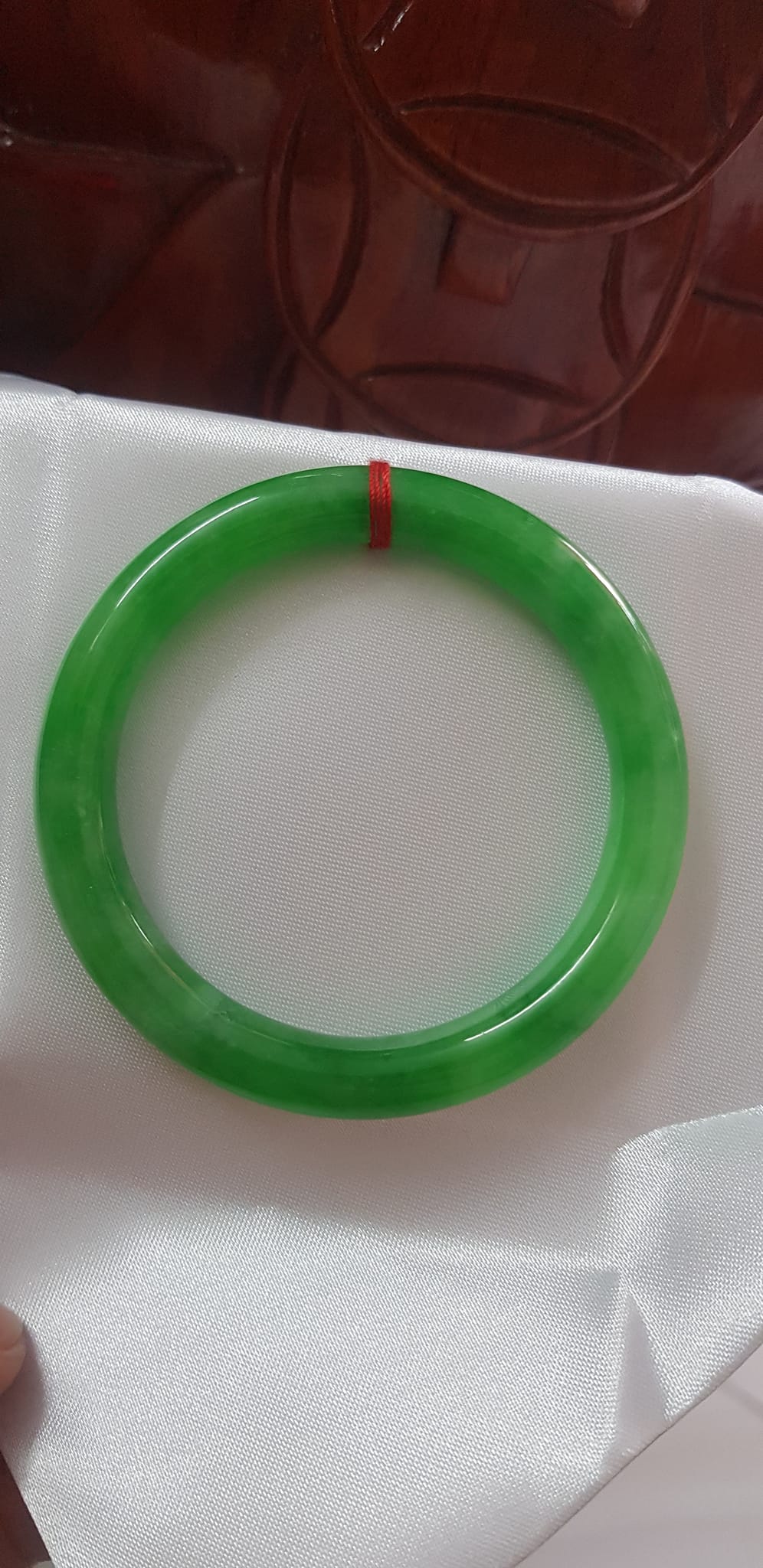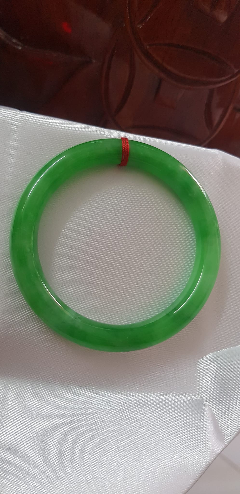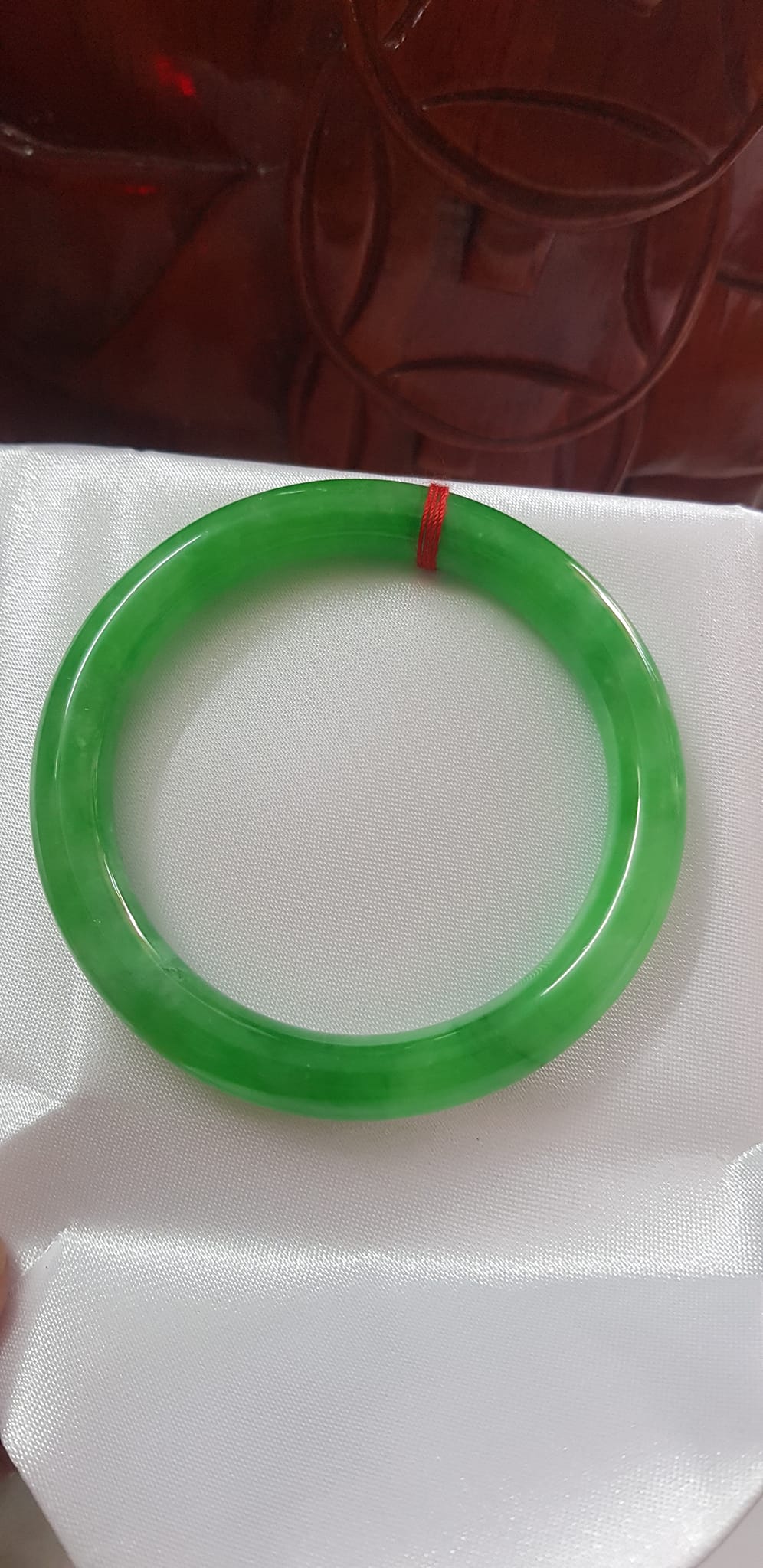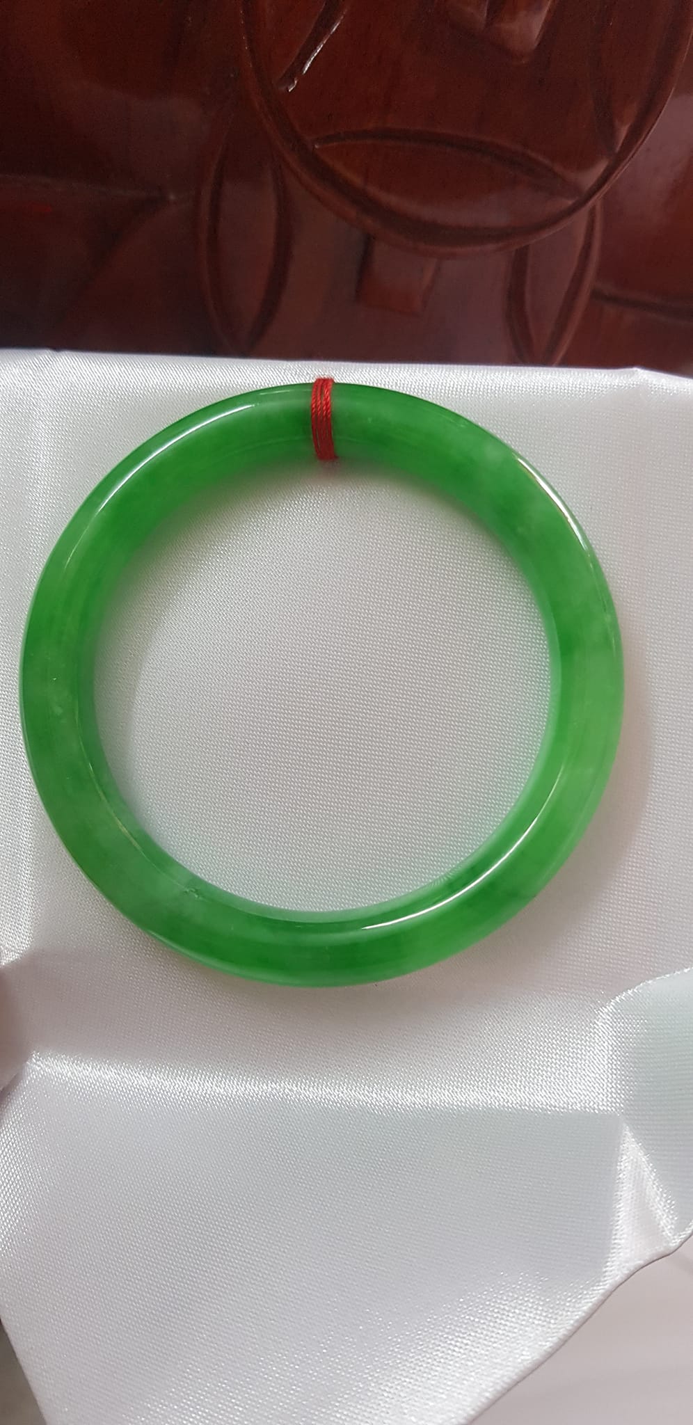 Vòng tay Nữ Đá Cẩm Thạch mới TR Lý 57 mm x cọng 7,5mm Màu Xanh lý tươi trắng 2 bên đều vòng đẹp Nữ 55kg - 64kg đeo đẹp món quà tặng chính mình