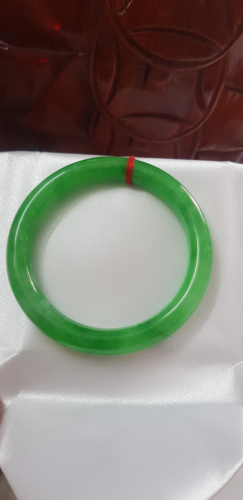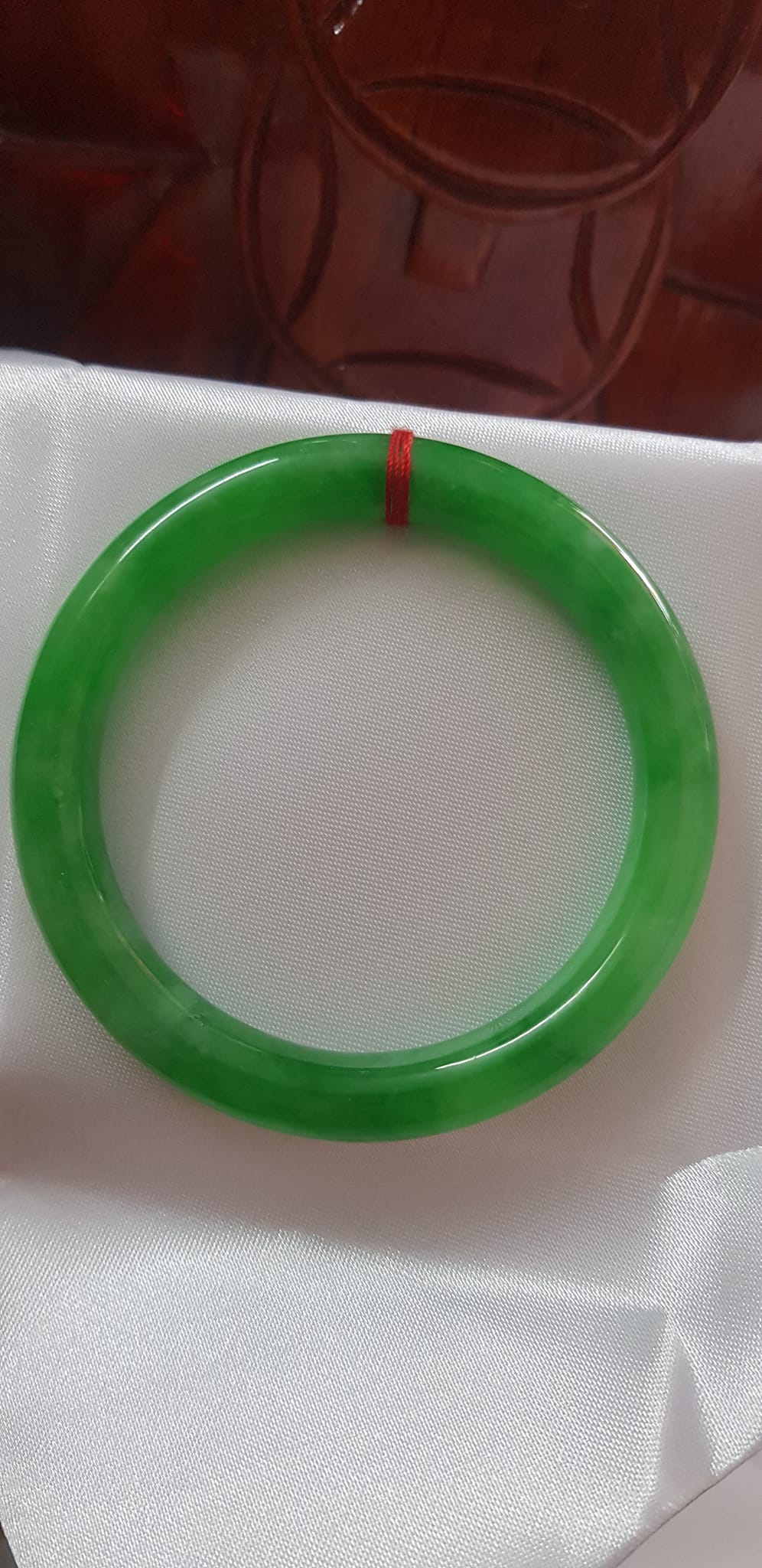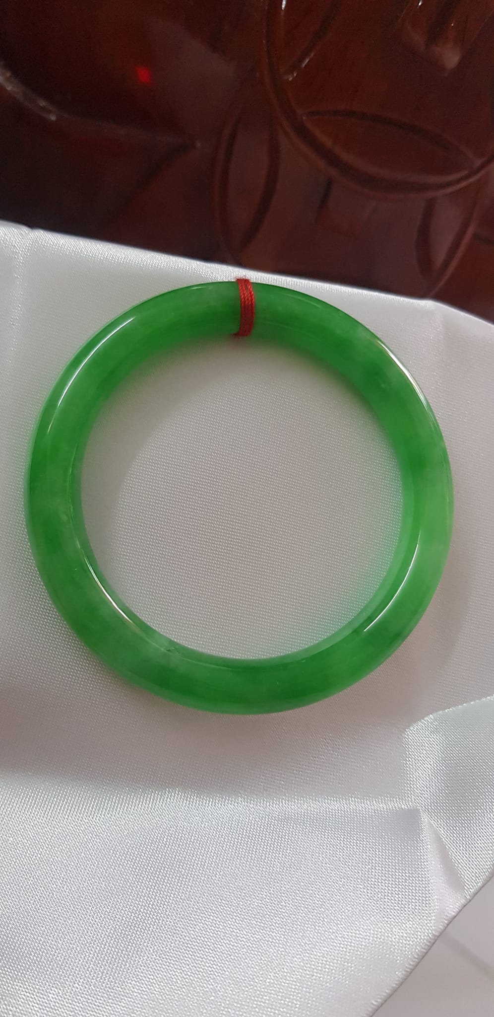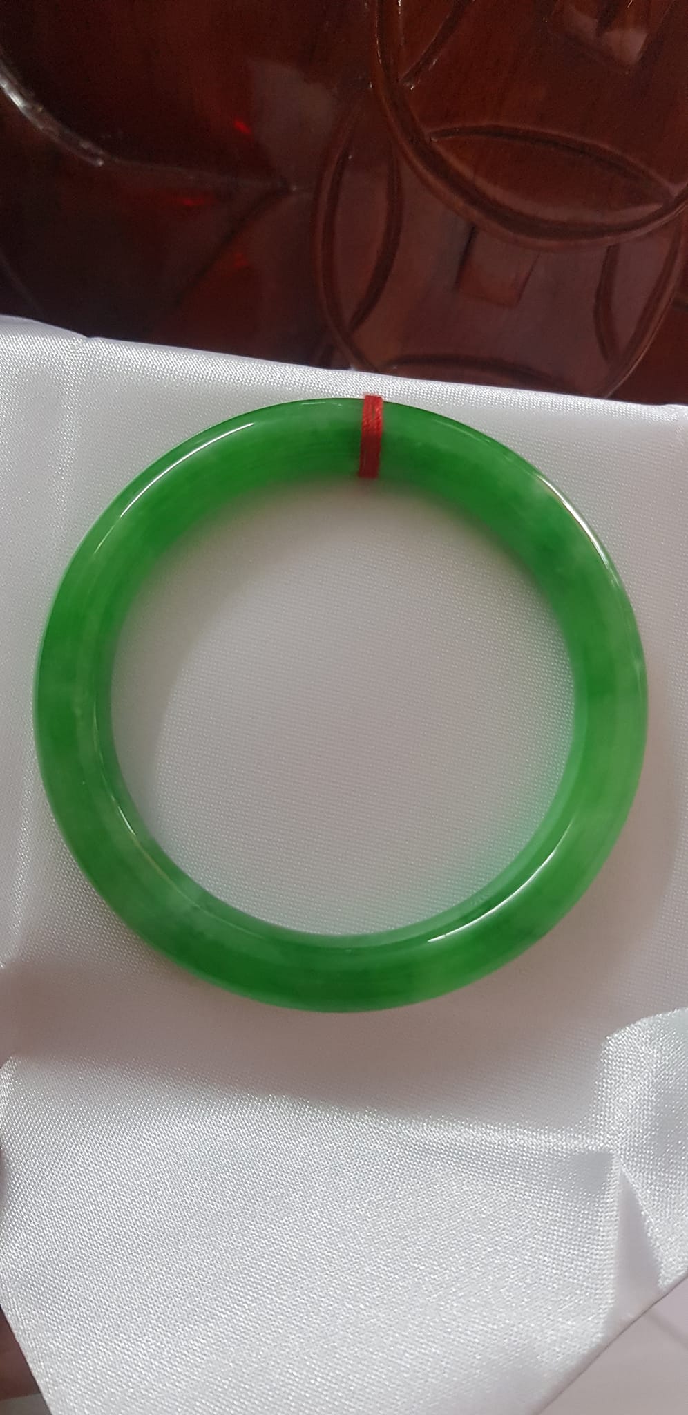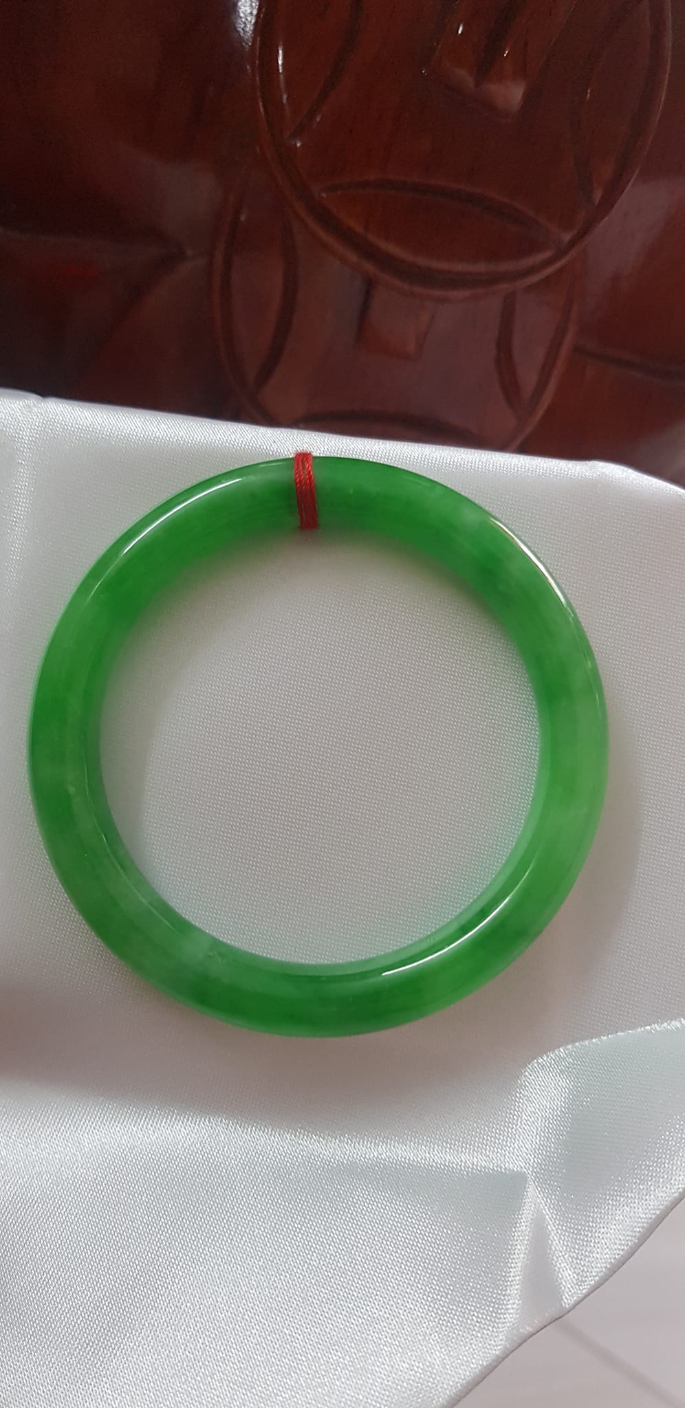 Vòng tay Nữ Đá Cẩm Thạch mới TR Lý 57 mm x cọng 7,5mm Màu Xanh lý tươi trắng 2 bên đều vòng đẹp Nữ 55kg - 64kg đeo đẹp món quà tặng chính mình