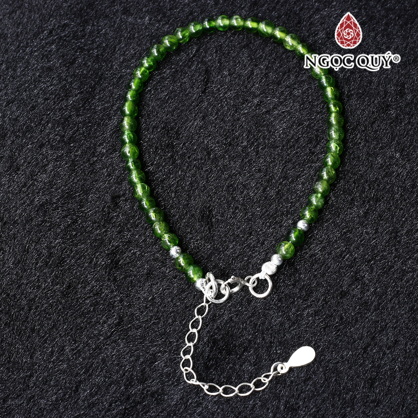 Màu xanh đặc biệt và sang trọng của Diopside khi chế tác thành vòng tay tạo nên một tác phẩm nghệ thuật tuyệt vời, vừa thanh lịch, vừa không kém phần hiện đại, góp phần tôn thêm vẻ đẹp đôi bàn tay và mang lại nhiều may mắn cho bạn.