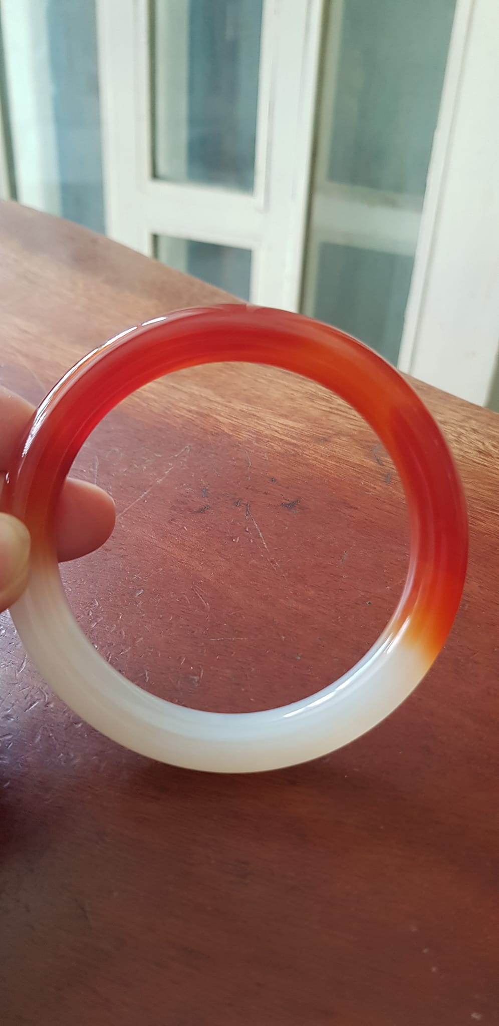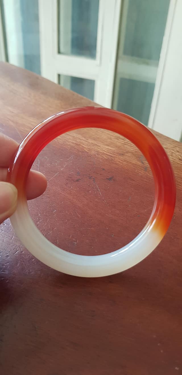 ✨Vòng tay đá mã não rẻ đẹp Đỏ đậm đẹp 1 bên trắng 1 bên Vòng Ni 60mm x chột to 10mm Nữ 60kg - 75kg đeo rất xinh tay ạ