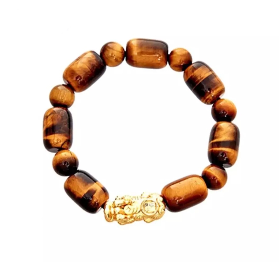 Vòng tay đá mắt hổ vàng tươi 10mm nam mix tỳ hưu