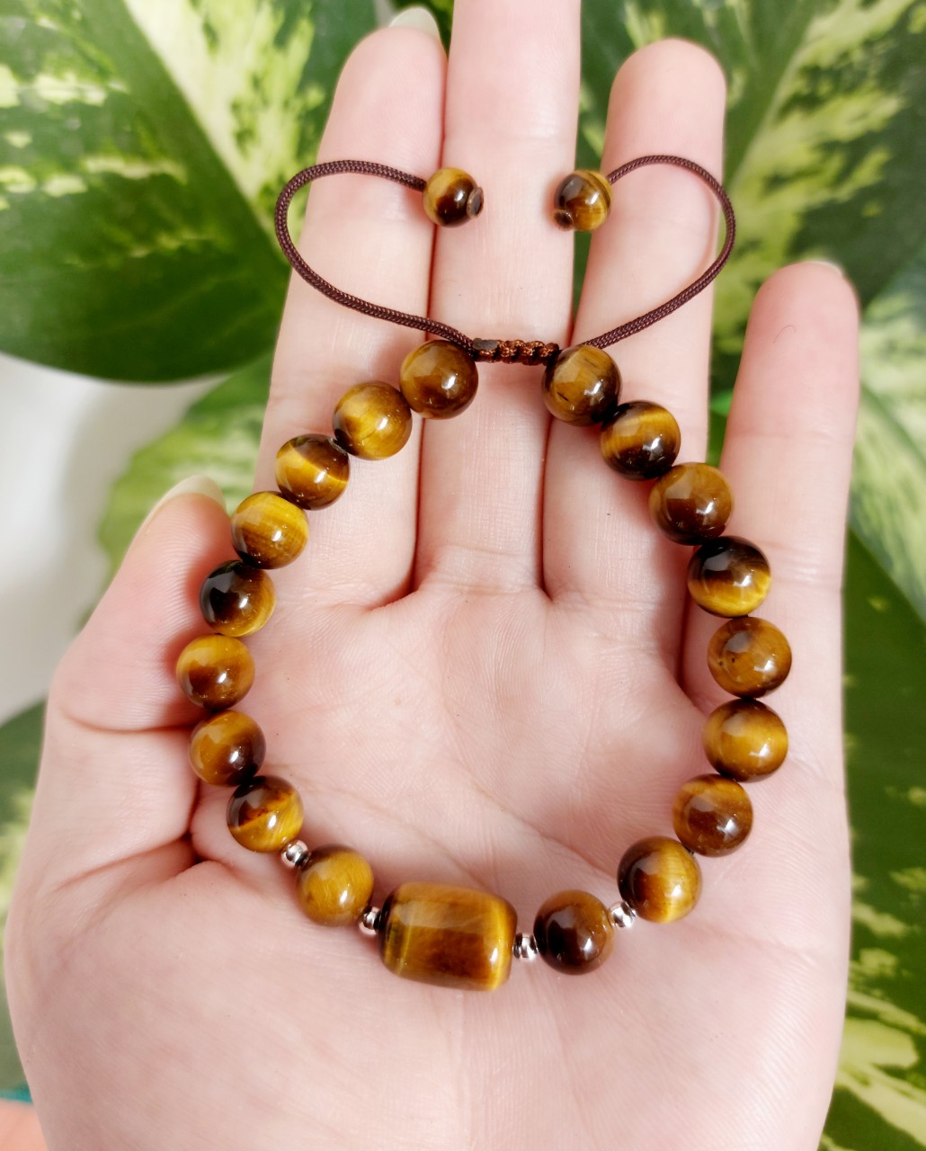 Vòng tay đá mắt hổ vàng nâu thiên nhiên mix lu thống cho các bạn Nữ công sở làm trang sức