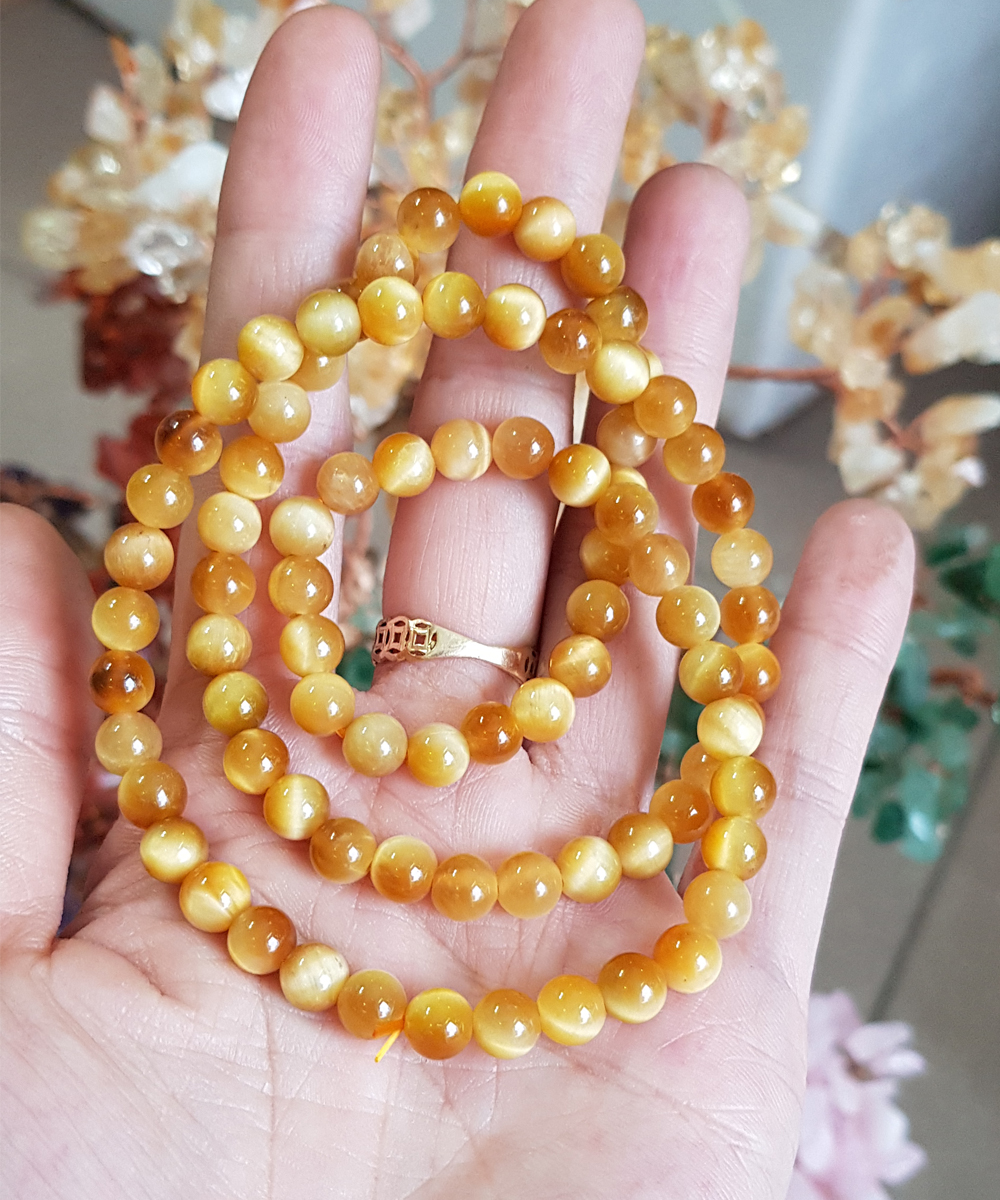 Vòng tay đá mắt hổ vàng anh vip 6mm quấn tay 3 vòng đẹp màu vàng anh tươi đẹp Shop Sunny Quận 8 #6mm