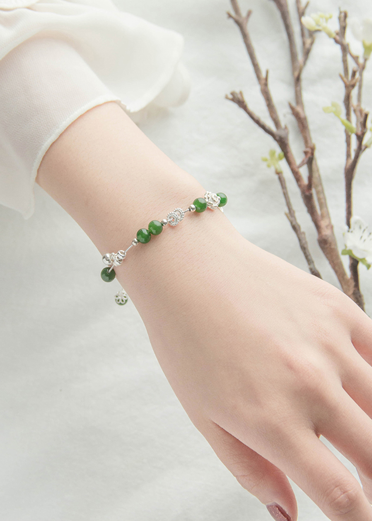 VÒNG TAY ĐÁ NGỌC BÍCH PHỐI CHARM BẠC TRẮNG