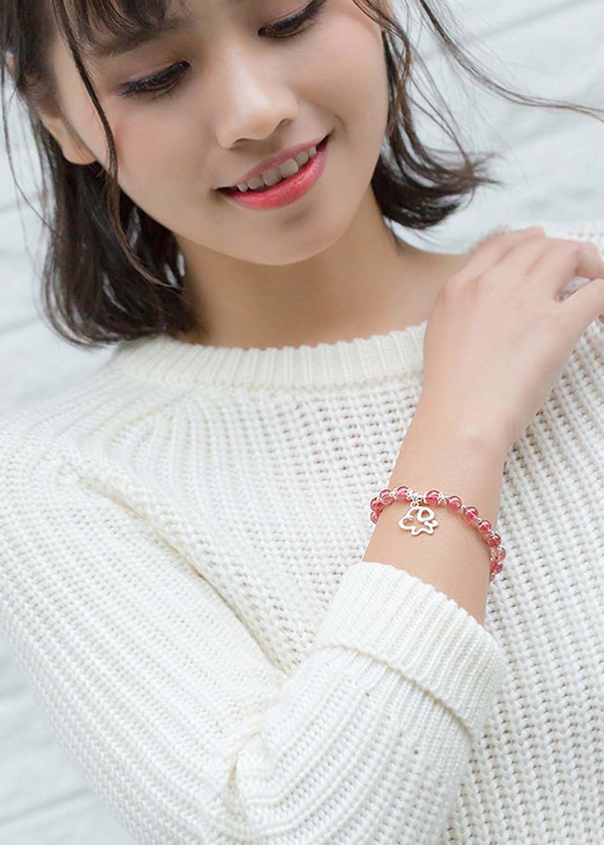 Vòng tay đá Thạch Anh Dâu mang nét đẹp nhẹ nhàng, nữ tính và hết sức duyên dáng, giúp người phụ nữ trở nên nổi bật và ấn tượng hơn trong mắt những người xung quanh.