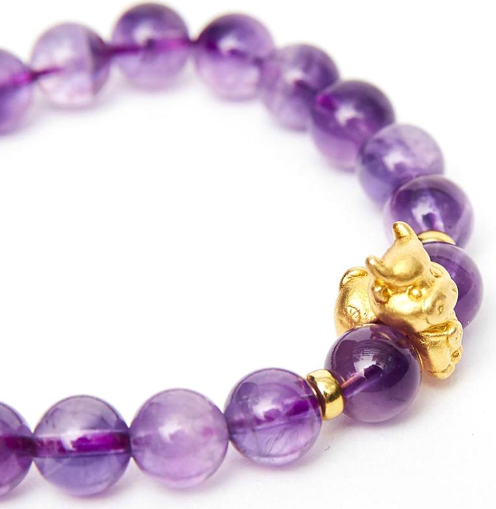 Vòng tay đá thạch anh tím charm tuổi sửu bạc mạ vàng 24K 8mm mệnh hỏa, thổ - Ngọc Quý GemstonesVòng tay đá thạch anh tím charm tuổi sửu bạc mạ vàng 24K 8mm mệnh hỏa, thổ - Ngọc Quý Gemstones