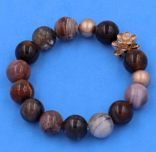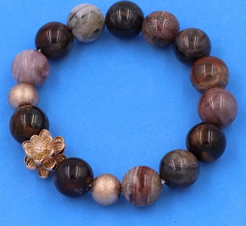 ✨Vòng tay Gỗ Hóa Thạch size 12 ly charm Hoa Sen vàng hồng VGHTHSHBH12 - hợp tất cả các mệnh