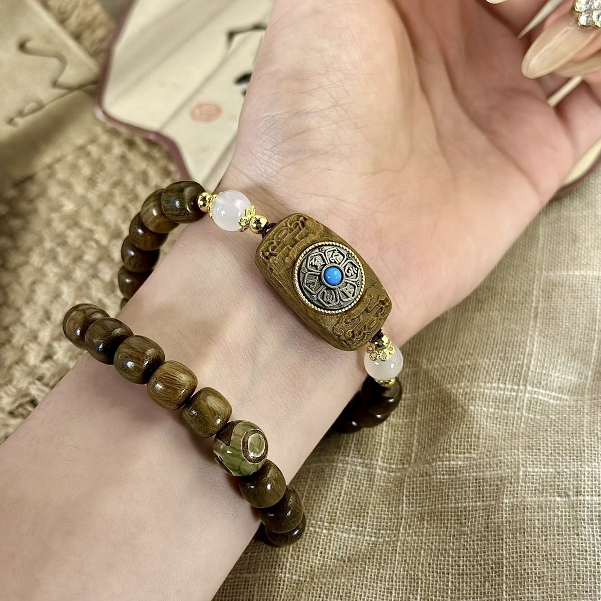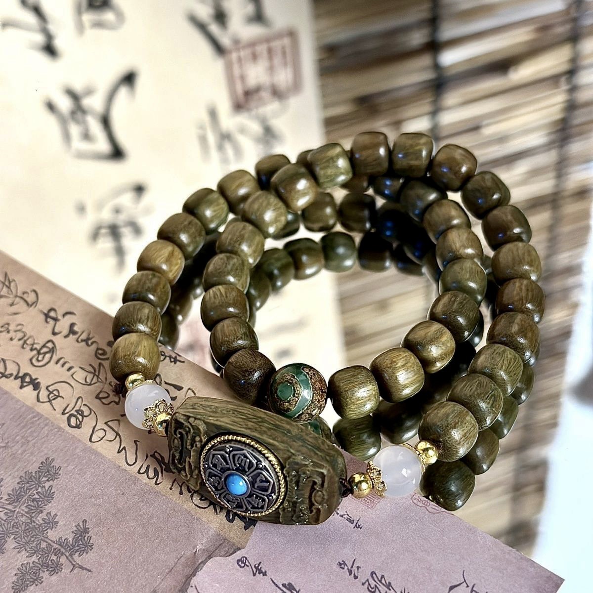 ✨VÒNG TAY LỤC TỰ OM MANI XOAY ĐƯỢC GỖ ĐÀN HƯƠNG XANH ĐỔI MÀU