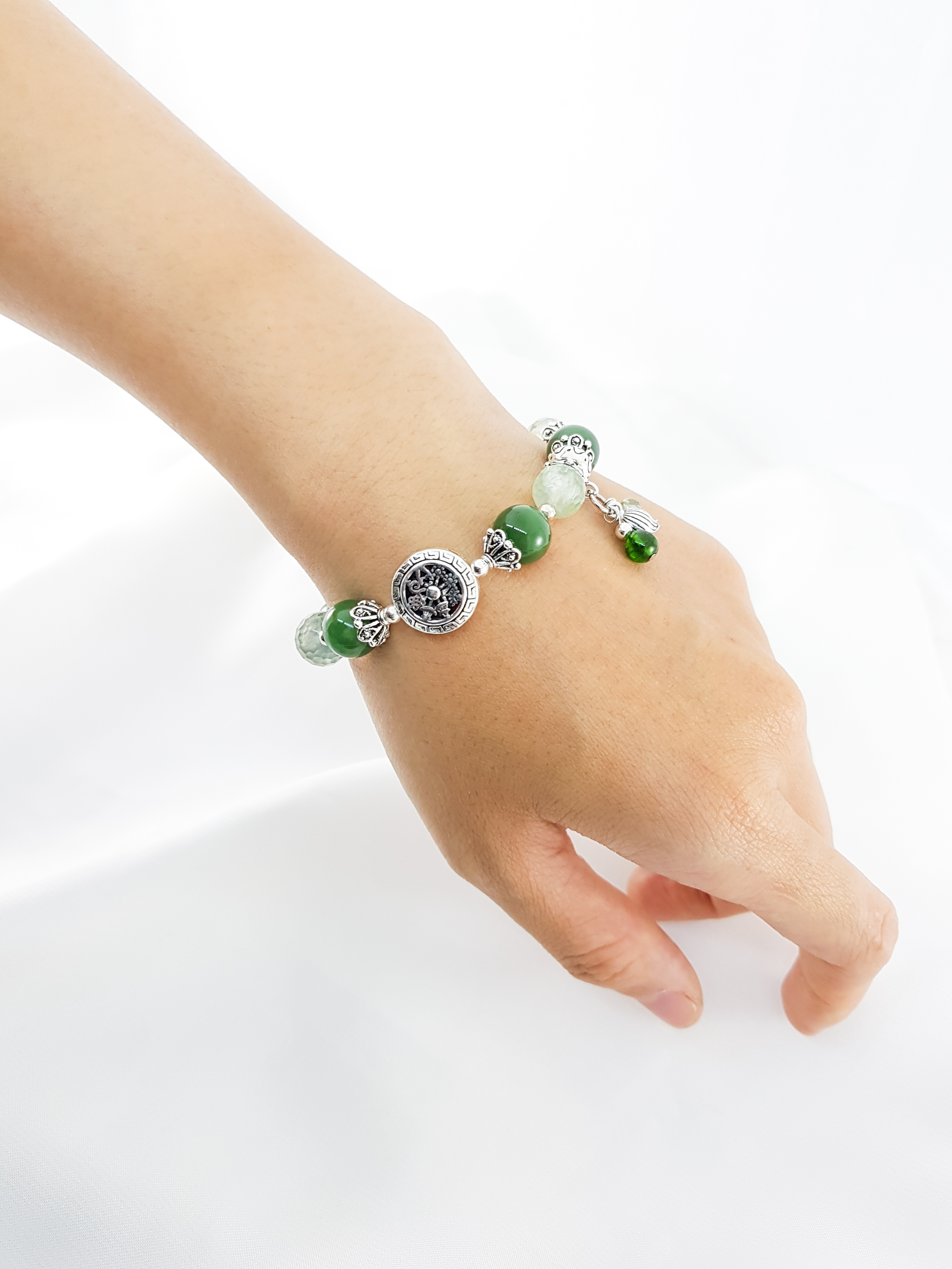 Vòng Thạch Anh Ưu Linh Xanh Phối Hoa Thạch anh xanh Đá Thạch Anh Xanh (Green Aventurine) còn được gọi là “Đá của Cơ Hội”, nó được cho là loại đá mang lại may mắn