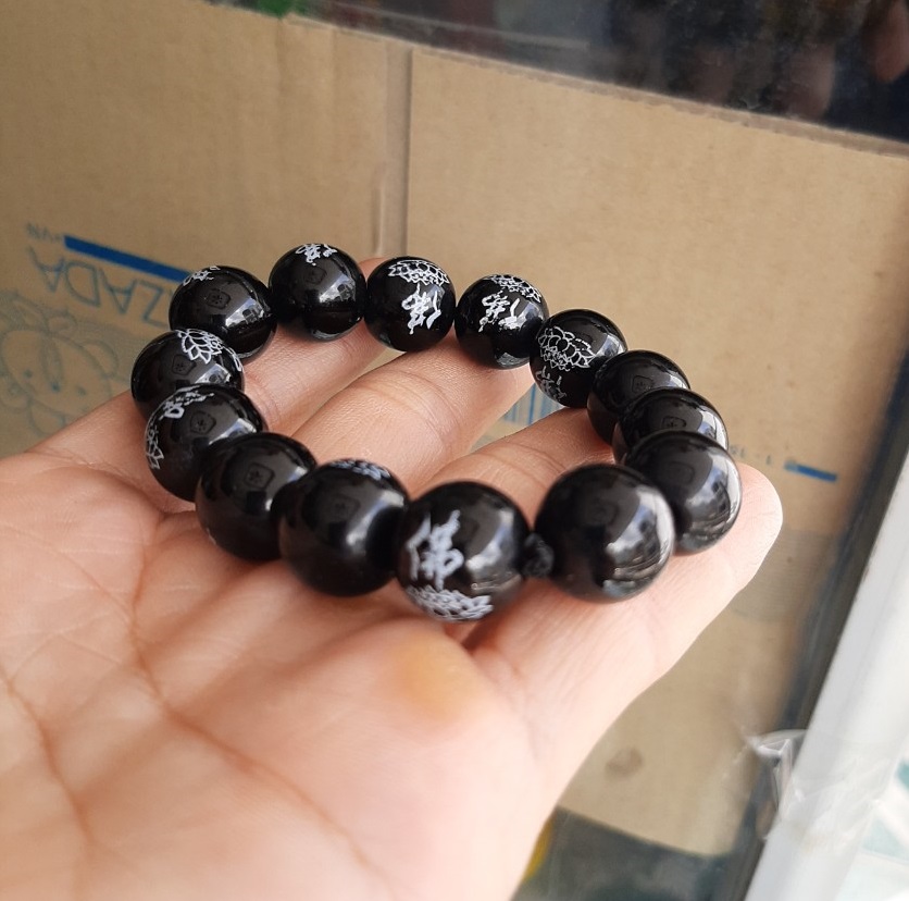 ✨VÒNG TAY NAM ĐÁ KHẮC HÌNH HOA SEN SIZE 14LY THỜI TRANG