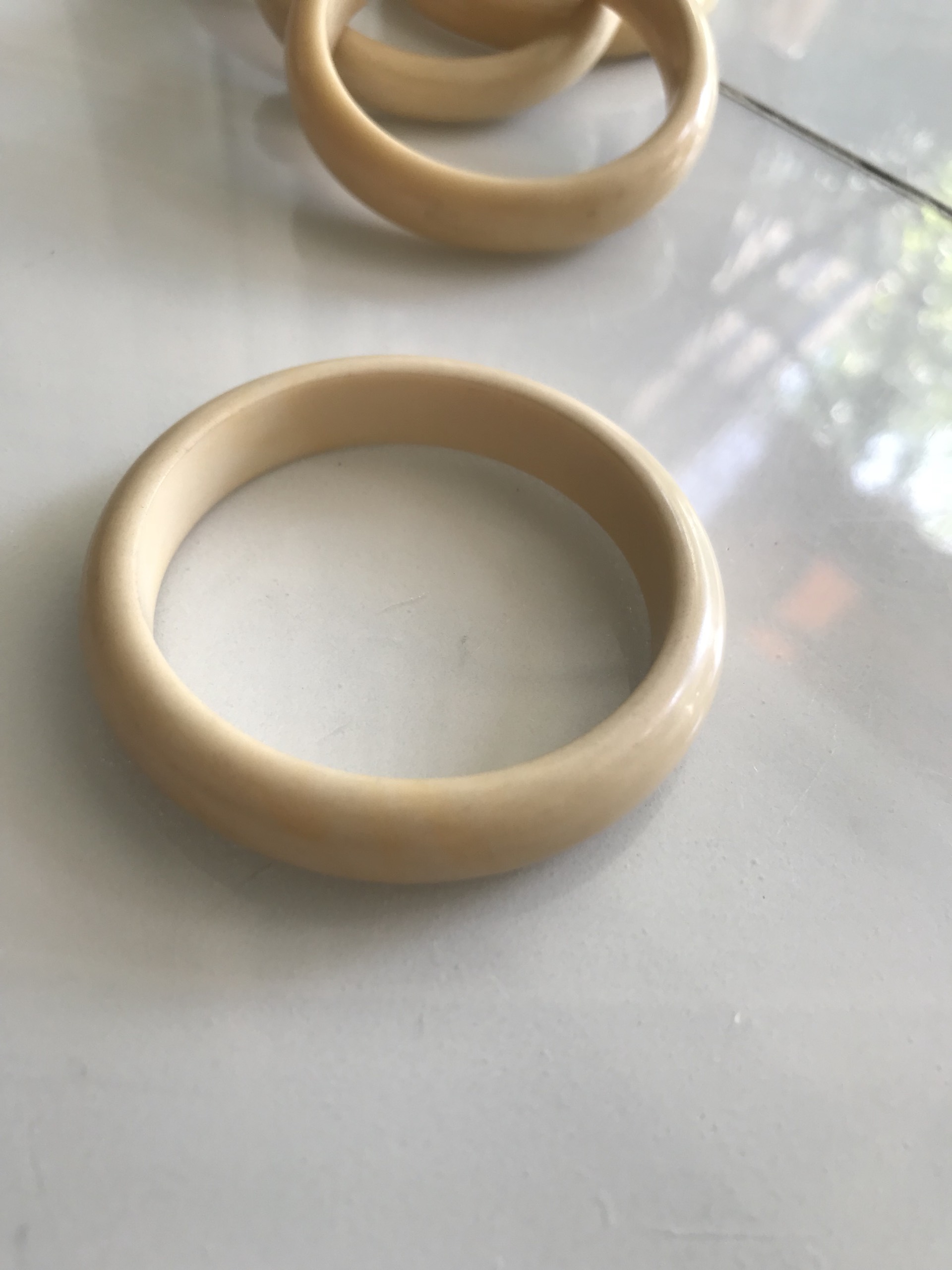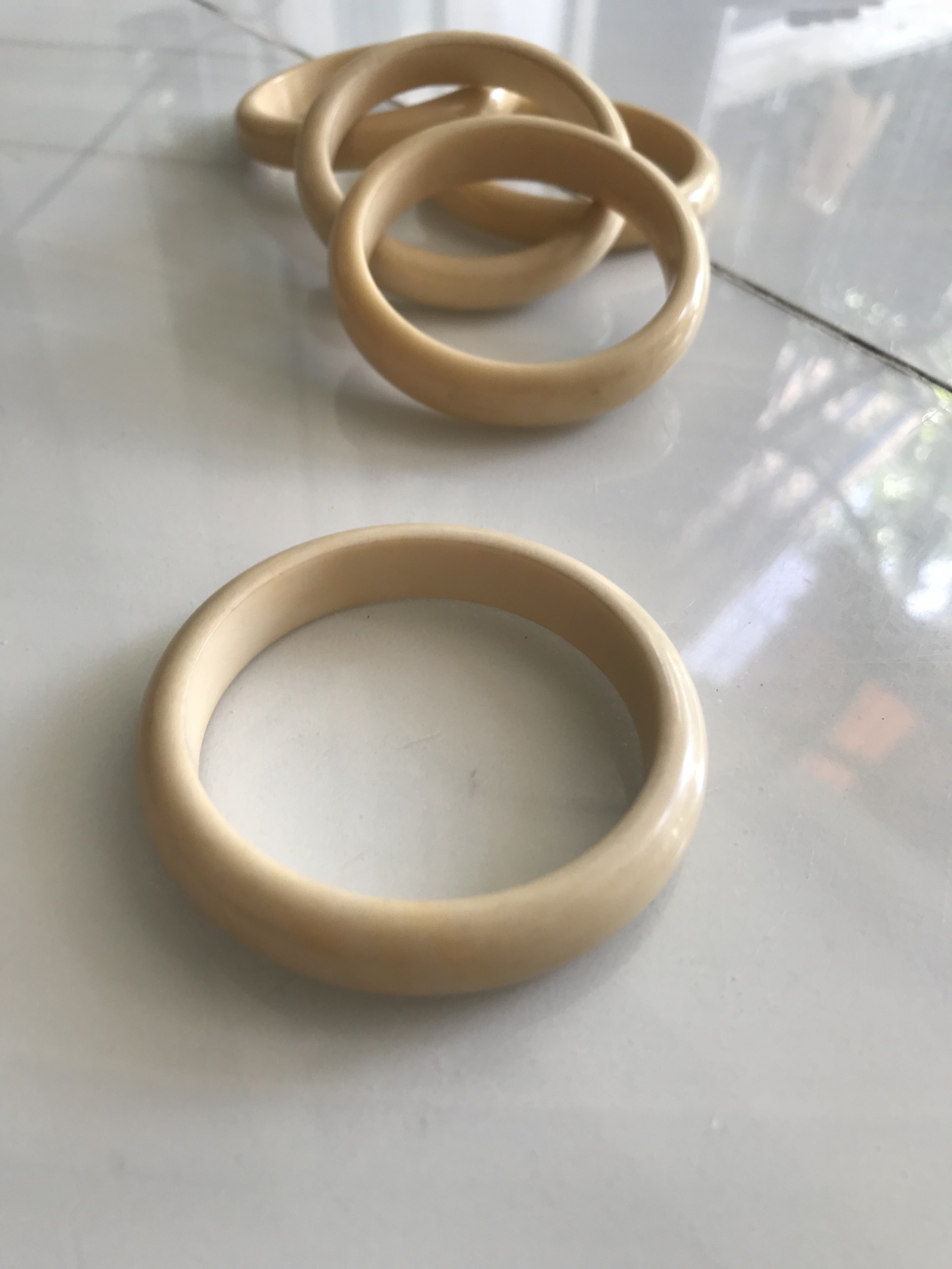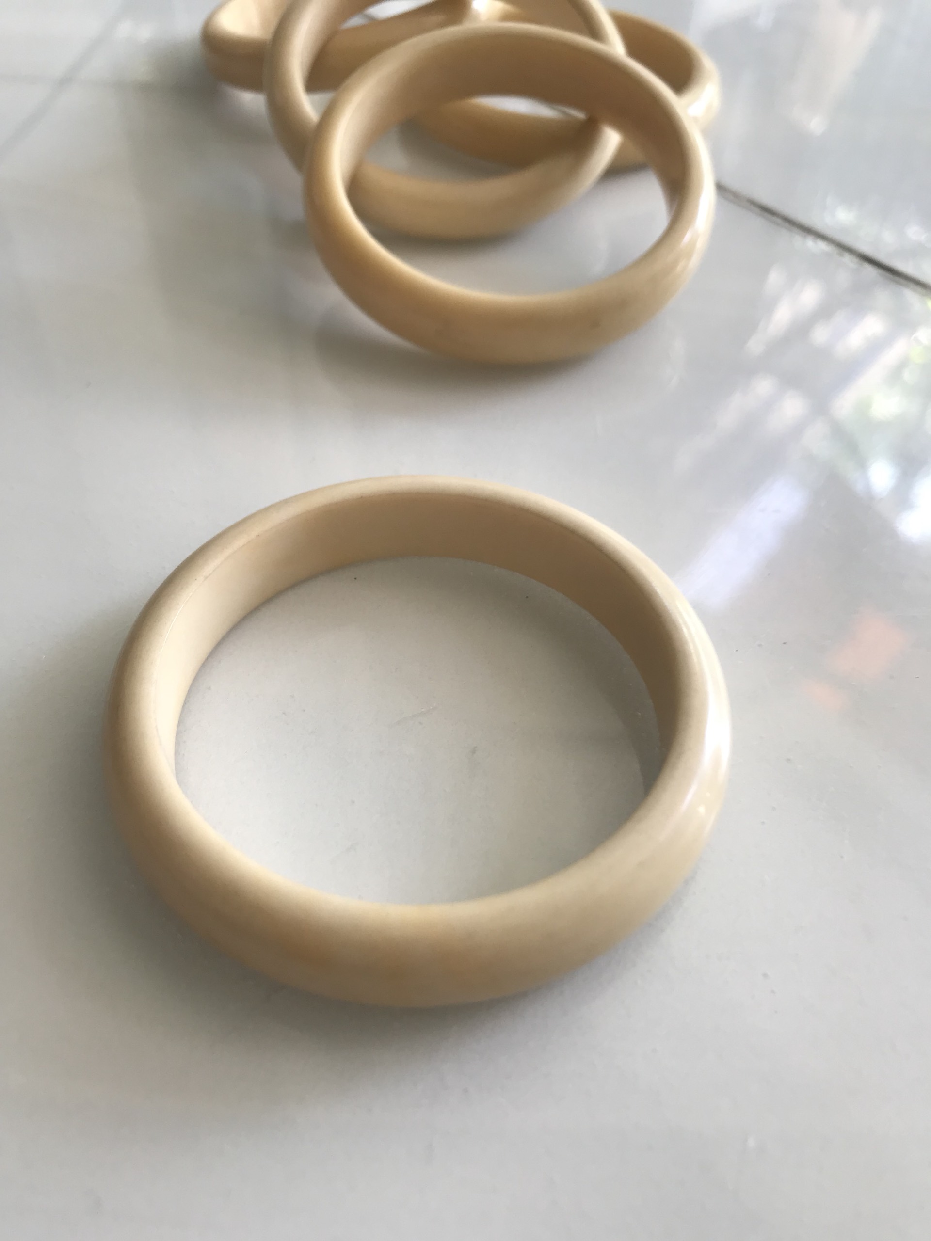 Vòng Tay Nữ Giả Ngà hay gọi là Xương Mỹ Nghệ Bản hẹ màu trắng Ni 53mm Cao 11mm các Chị đeo tay nhỏ 45kg - 53kg đeo ạ