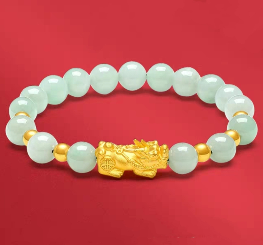 ✨Vòng tay nữ vòng tay may mắn đá cẩm thạch AAA 8mm gắn tỳ hưu hút Lộc Tài Duyên