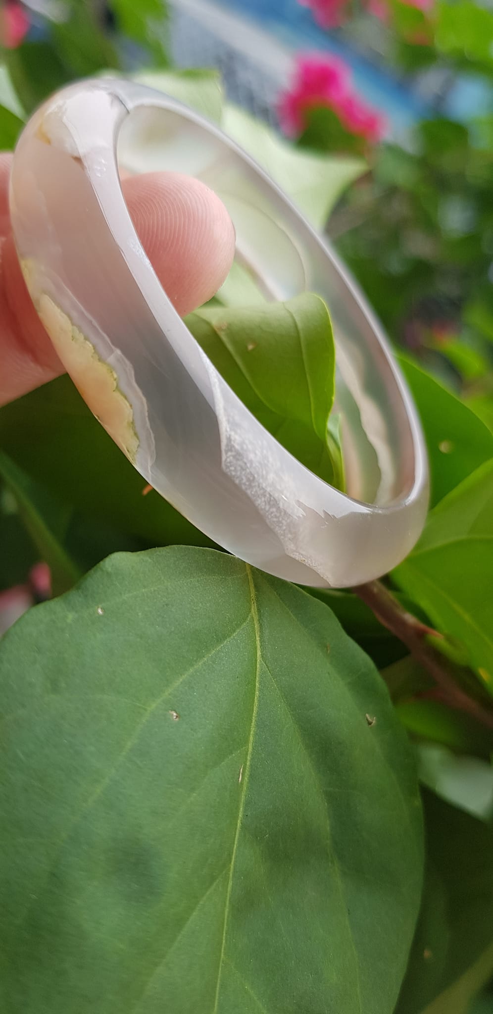 Vòng tay phong thuỷ Nữ Bản Hẹ Đá Mã Não Trắng trong vân hoa đẹp Vòng màu trắng trong Ni 50mm x Cao 12mm x dầy 6,5mm Hợp nữ mệnh kim mệnh Thủy ạ Sản