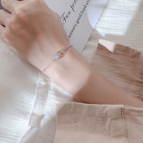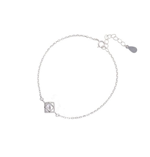 Lắc tay S925 hình khối bọc đá tinh tế
