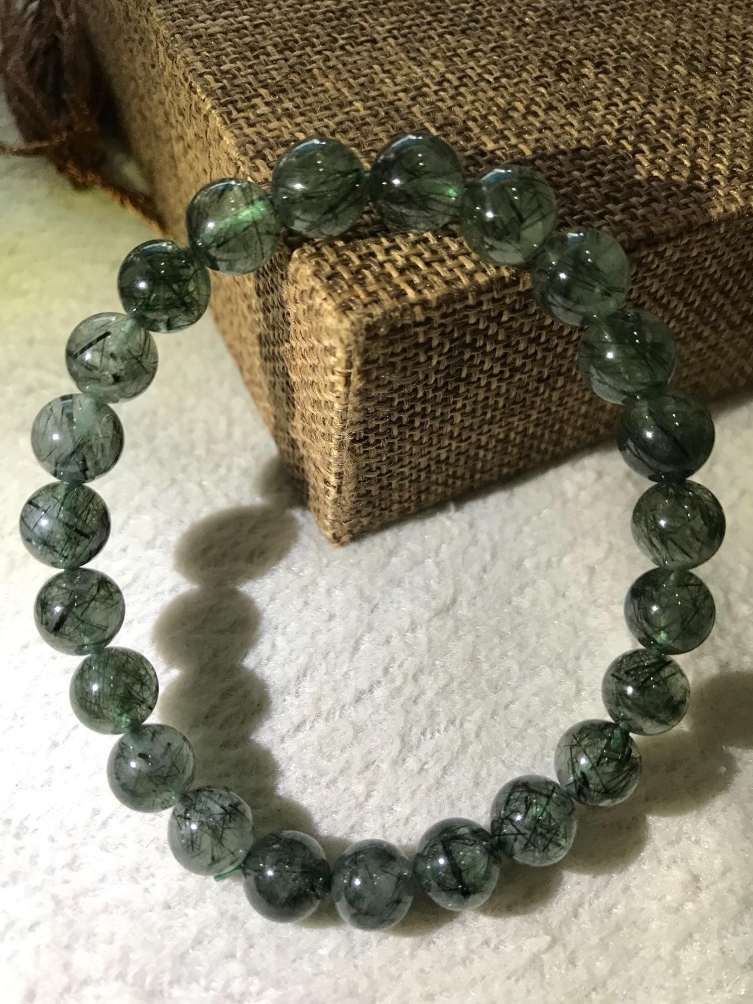 Vòng tay nữ chuỗi đá thạch anh tóc xanh nhuyễn tự nhiên trong đẹp vòng 8mm đẹp mệnh Thủy Mộc hỏa ạ