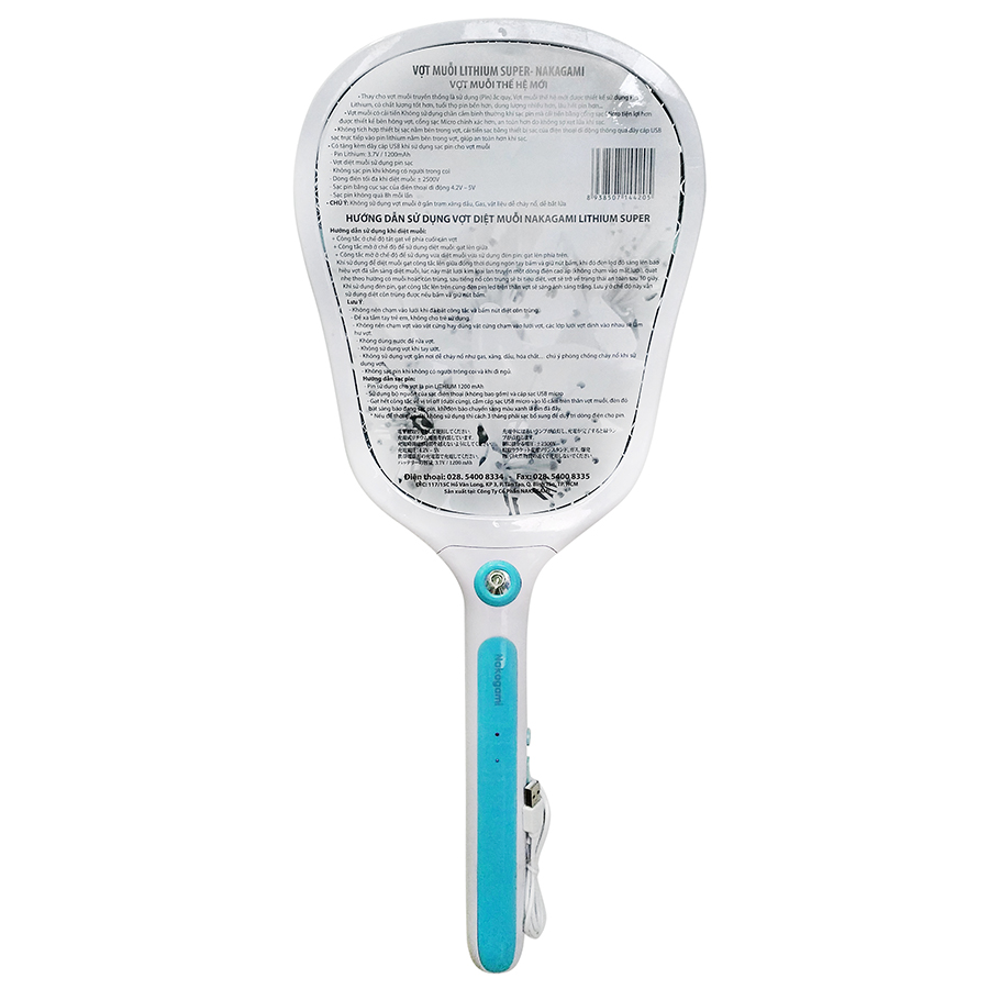 Mua tại Tiktok- Vợt Muỗi Lithium Nakagami Super sử dụng Pin Lithium có dung lượng lớn 1.200 mAh, có chất lượng tốt hơn, tuổi thọ pin bền hơn, dung lượng nhiều hơn, lâu hêt pin hơợt muỗi cải tiến có mặt vợt rộng lớn hơn dễ vợt trúng muỗi hơn.