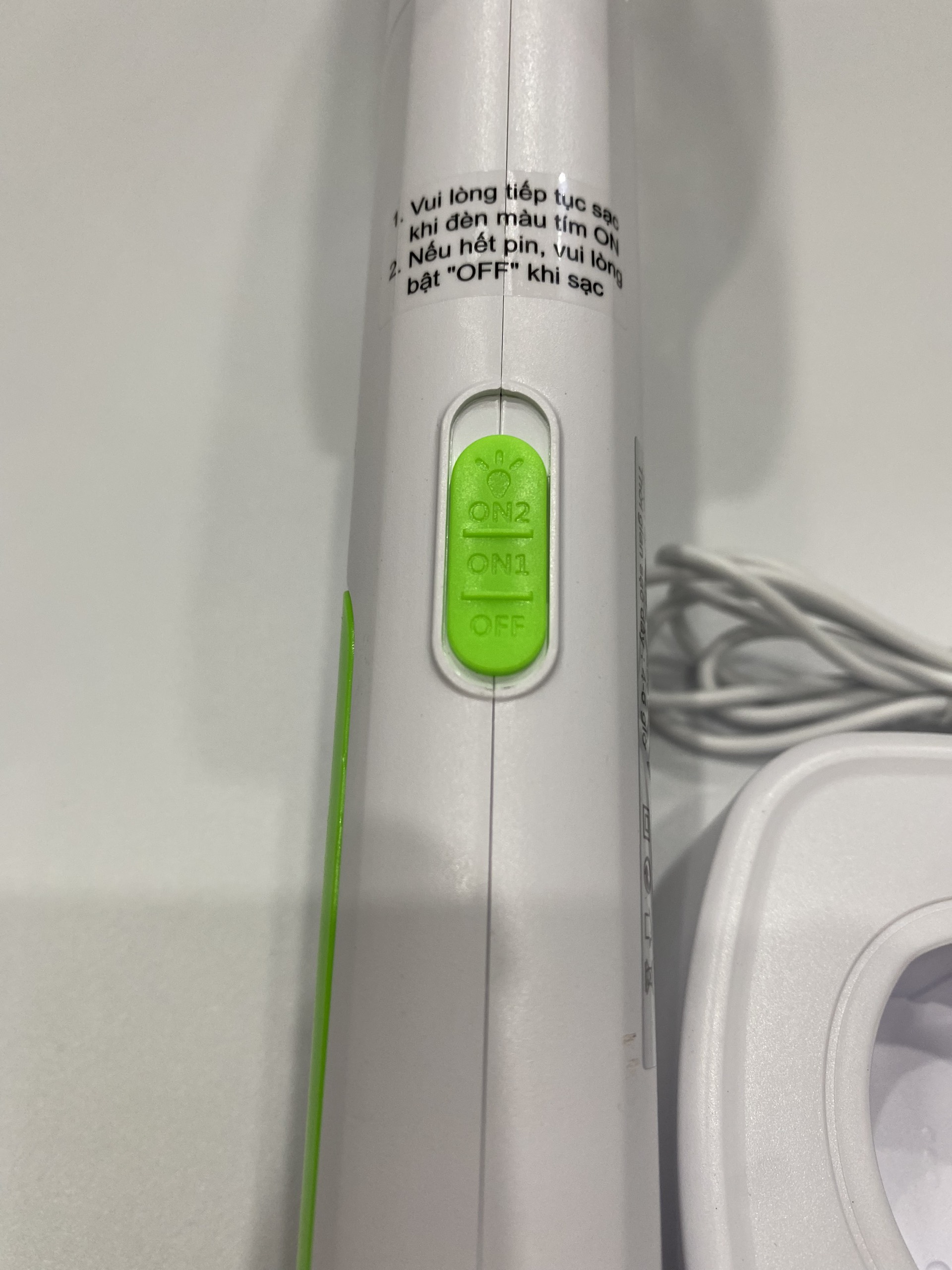 - Đèn báo màu xanh: sản phẩm được sạc đầy. Có chức năng tự động tắt nguồn và nhắc nhở. Đèn báo đỏ: sản phẩm đang sạc. Khi sản phẩm sạc đầy, đèn sẽ tự động chuyển sang màu xanh lục và người dùng không cần phải chú ý đến thời gian sạc theo cách thủ công.