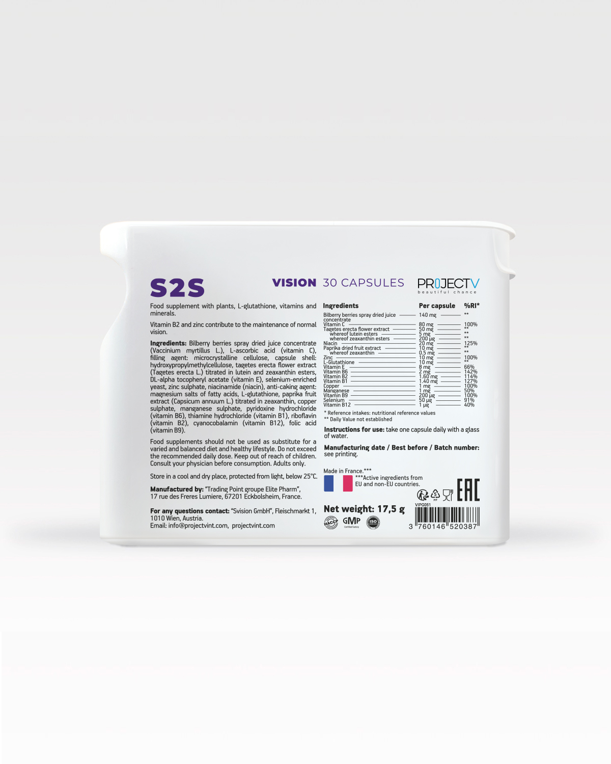 S2S - Bảo vệ toàn diện sức khỏe của hệ thống thị giác bằng cách duy trì chất lượng cảm nhận thị giác và củng cố các mạch máu.