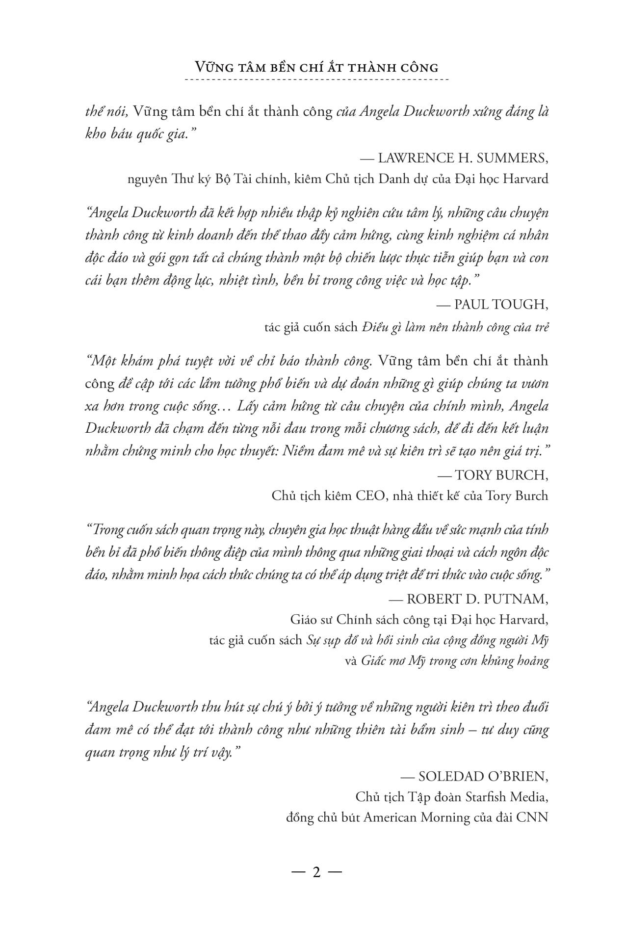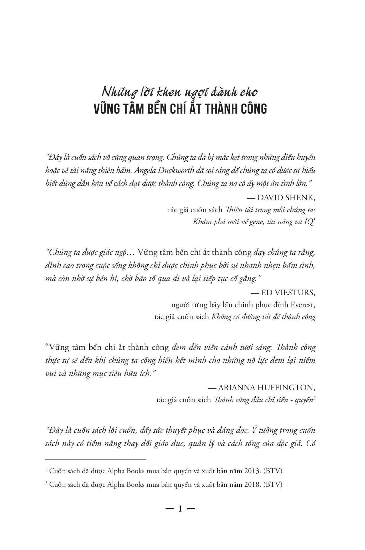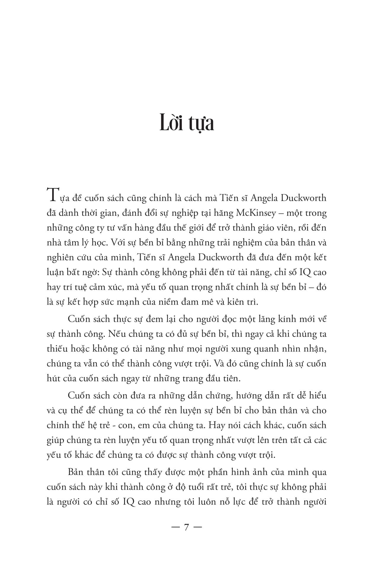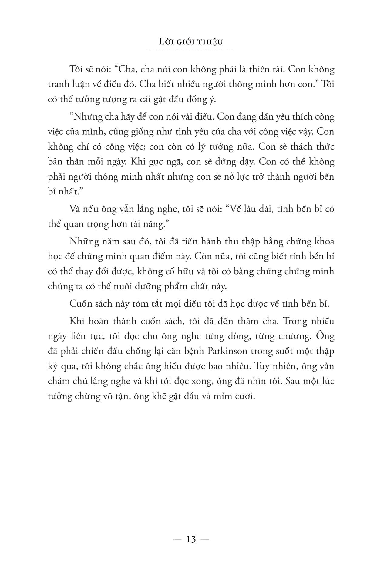 Đầy sức cuốn hút các nhân, nhiều ý tưởng sâu sắc và thậm chí còn có thể thay đổi cuộc đời bạn, Vững tâm bền chí ắt thành công là một cuốn sách về những gì xảy ra trong tâm trí bạn khi vấp ngã, và làm thế nào mà chính những điều đó, chứ không phải tài năng hay may mắn – mới tạo nên sự khác biệt.