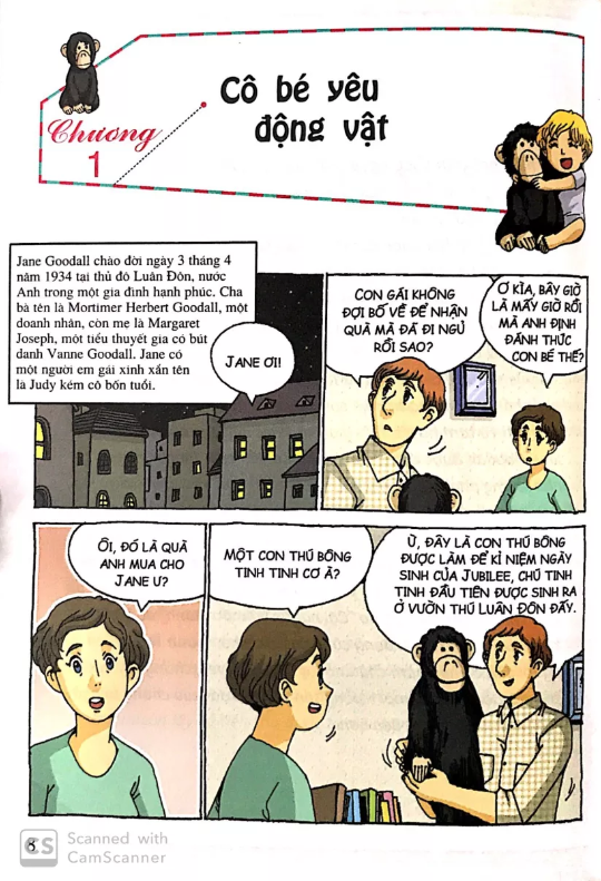 Chuyện kể về cuộc đời từ thuở ấu thơ tới khi đạt được những thành công to lớn trong sự nghiệp nghiên cứu về loài tinh tinh của nhà động vật học người Anh, Jane Goodall. Ngay từ khi còn nhỏ, Jane Goodall đã là một đứa trẻ lập dị và tính hiếu kì đặc biệt. Cô bé rất quan tâm đến động vật, có lần đã dành 5 tiếng đồng hồ để ngồi trong chuồng gà quan sát cảnh gà đẻ trứng. Rồi khi vào tiểu học, cô rủ một nhóm bạn thành lập nhóm quan sát tự nhiên, nuôi dưỡng kĩ năng quan sát động vật của mình. Thế nhưng, chính những cuốn sách như "Tarzan", "Bác sĩ Dolittle" mẹ mang về đã chắp cánh giấc mơ sang châu Phi để nghiên cứu động vật trong lòng Jane. Cuối cùng giấc mơ đã trở thành hiện thực, Jane tới Kenya theo lời mời của một người bạn cấp 3. Tại đây cô đã gặp và trở thành thư kí cho nhà khảo cổ học lừng danh Louis Leakey và được ông tin tưởng giao cho nhiệm vụ nghiên cứu về tinh tinh. Trong suốt nhiều năm nỗ lực tiếp cận và dành rất nhiều tình cảm chân thành cho loài linh trưởng này, Jane Goodall đã thực sự trở thành một nhà nghiên cứu động vật nổi tiếng thế giới. Những cống hiến của bà dành cho việc bảo vệ các loài động vật hoang dã và môi trường đã được ghi nhận bằng những giải thưởng vô cùng danh giá. Cho đến nay, tuy đã 80 tuổi, bà vẫn miệt mài nghiên cứu và đi khắp năm châu để tuyên truyền, kêu gọi người dân chung tay bảo vệ động vật và môi trường để thế giới ngày càng tốt đẹp hơn.
