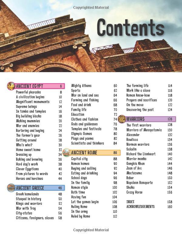 Travel through time and discover how the pyramids were built, why Athens was a leading city-state and which parts of the world were ruled by Rome, and uncover the stories of some of historys fiercest warriors. This brilliant book is bursting with fantastic information, detailed illustrations and stunning photographs. The engaging text is presented in bite-size numbered paragraphs, while feature panels provide facts, cartoons, quizzes and activities.