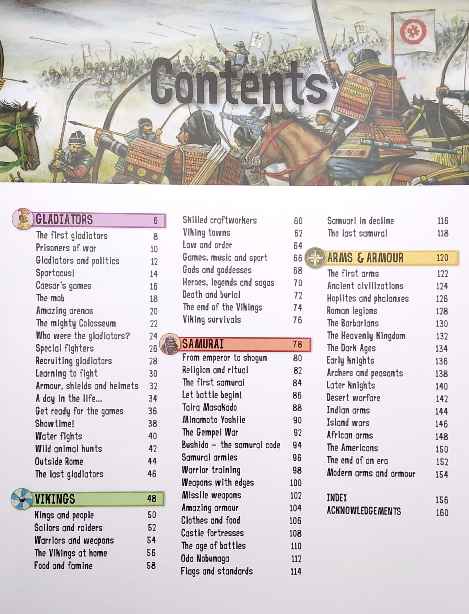 Take a journey through time to learn about some of the fiercest warriors in history. Find out about Vikings, gladiators and samurai warriors - as well as how arms and armour have been used in battle through the ages. This brilliant book is bursting with fantastic information and stunning illustrations.