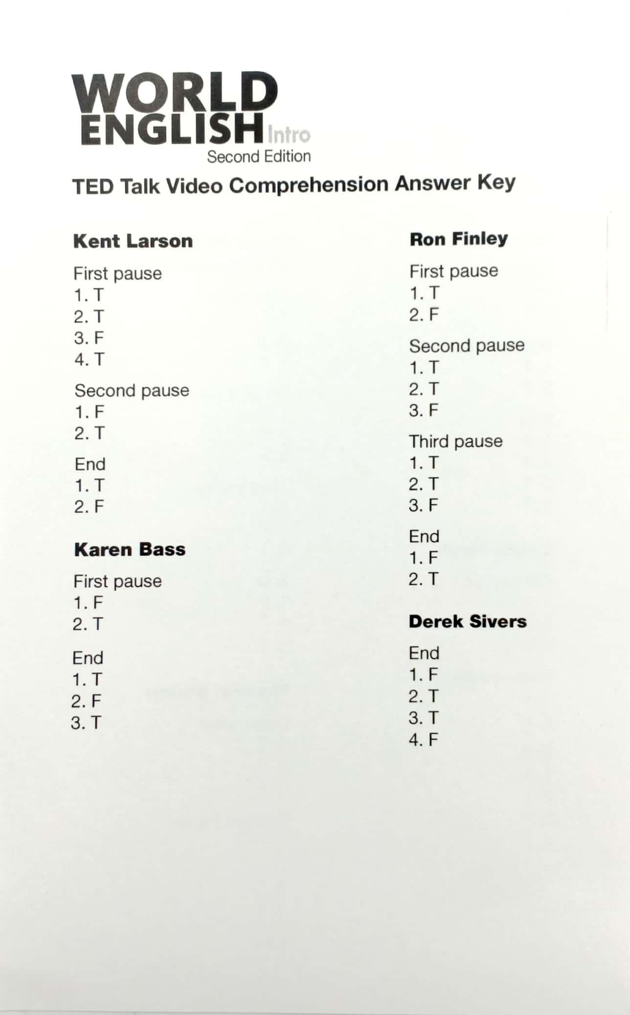 • NEW TED readings and TED TALK videos along with updated content and video from National Geographic will provide a springboard for learners to share ideas in English.