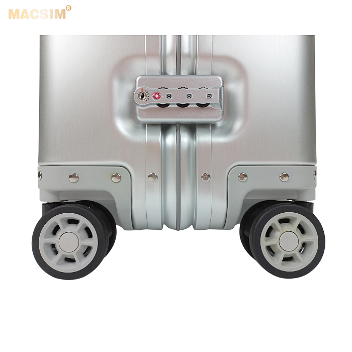 Toàn bộ thân vỏ vali Macsim làm bằng hợp kim nhôm A6063 làm cho vali rất nhẹ, độ đàn hồi cao, chống ăn mòn, chịu được tải trọng lớn.