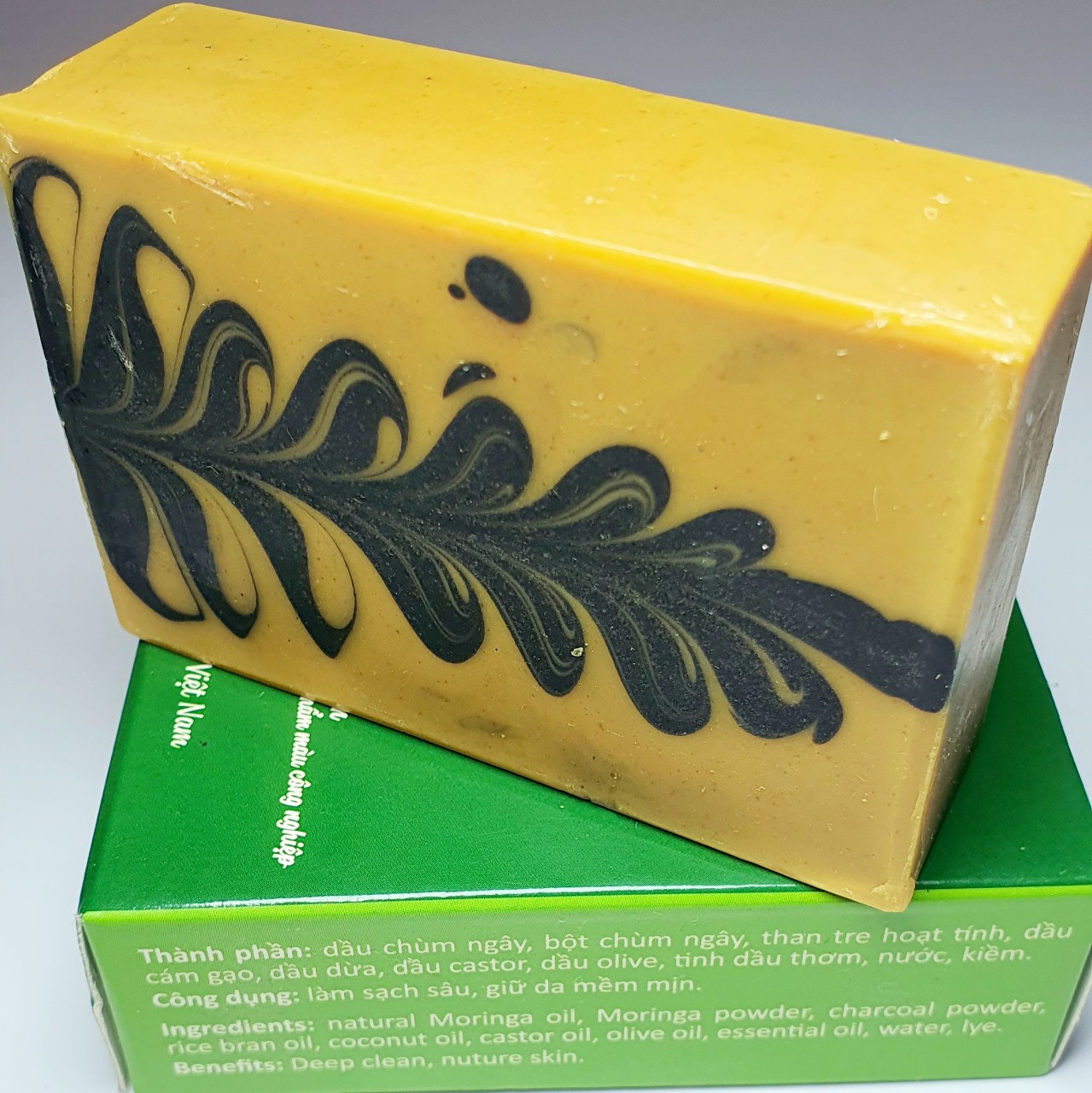 Mua tại TiktokXà bông thiên nhiên chiếm ưu thế tuyệt đối so với xà phòng công nghiệp về khả năng chăm sóc làn da với nhiều dưỡng chất hữu ích. Không gây độc cho cơ thể người dùng và nguồn nước khi sử dụng. Xà phòng chùm ngây Moris được làm ra bằng quá trình phản ứng xà phòng hóa, nên sau một tháng mới sử dụng được. Khác với xà phòng được làm ra từ việc sử dụng phôi xà phòng bán sẵn nên chất lượng và nguồn gốc nguyên liệu luôn được đảm bảo. Màu xà bông Moris biến đổi theo thời gian Thành phần xà phòng Moris: Bao gồm Dầu chùm ngây, bột chùm ngây, than tre hoạt tính, dầu cám gạo, dầu dừa, dầu castor, dầu olive, tinh dầu thơm, nước và kiềm. Thành phần của xà bông chùm ngây Moris