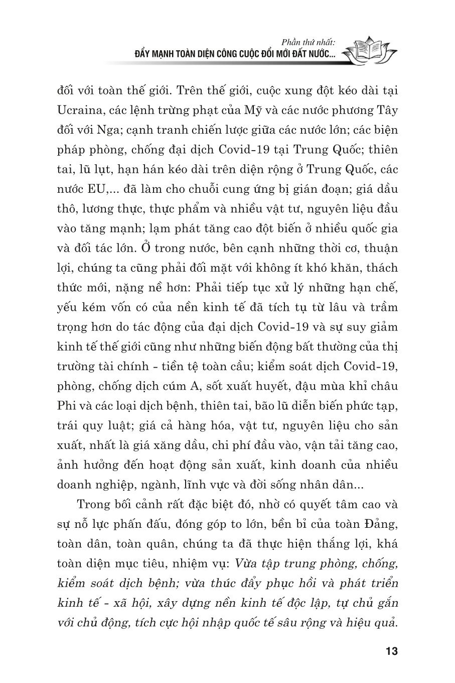 Cuốn sách "Cả nước đồng lòng, tranh thủ mọi thời cơ, vượt qua mọi khó khăn, thách thức, quyết tâm thực hiện thắng lợi Nghị quyết Đại hội XIII của Đảng" chọn lọc các bài