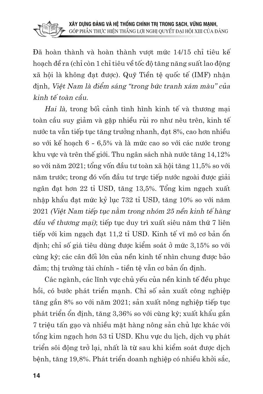 Cuốn sách “Xây dựng Đảng và hệ thống chính trị trong sạch, vững mạnh, góp phần thực hiện thắng lợi Nghị quyết Đại hội XIII của Đảng” tuyển chọn các bài phát biểu, bài viết,
