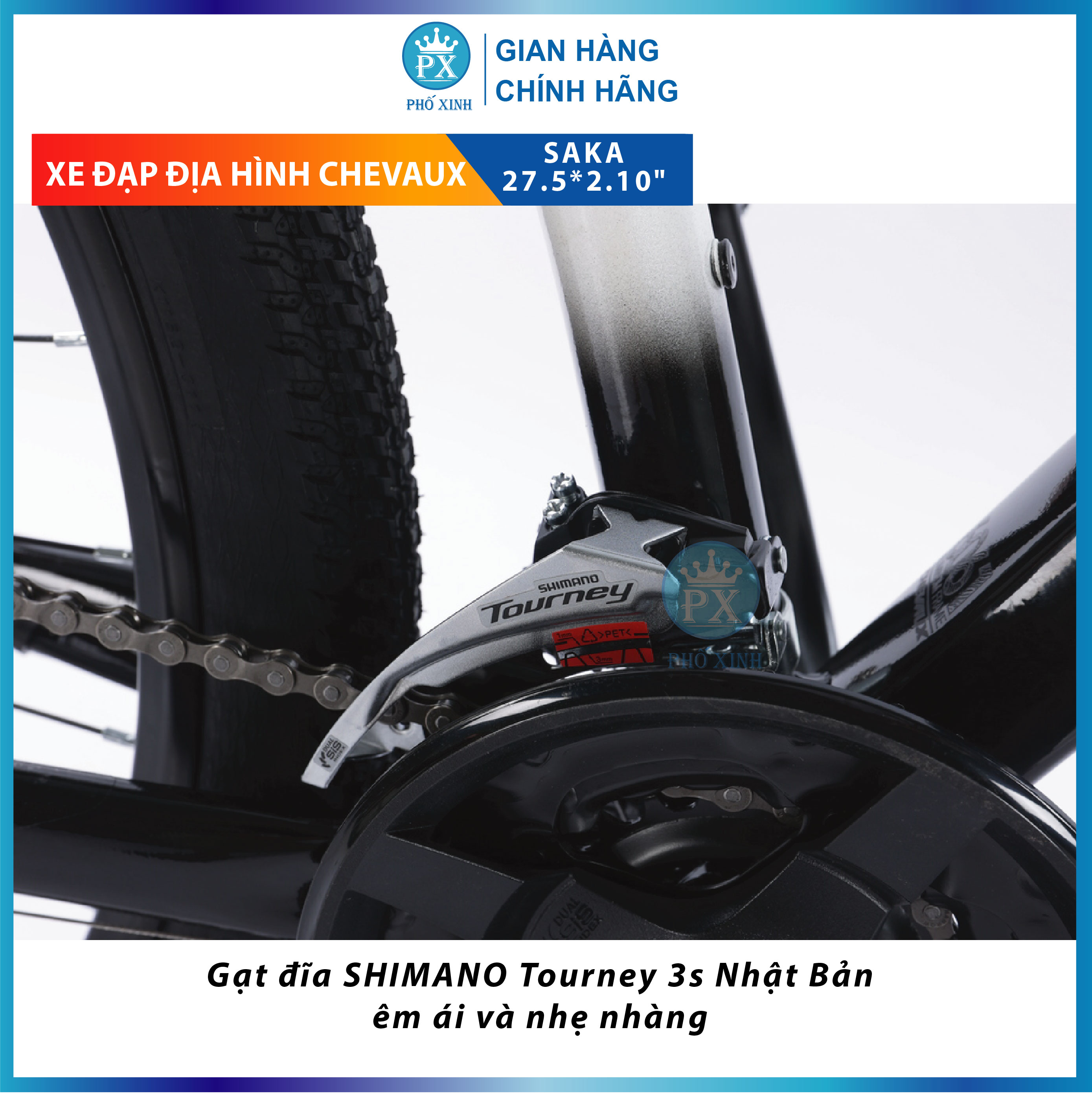 XE ĐẠP CHEVAUX SAKA Xe đạp Chevaux Saka là mẫu xe địa hình băng đồng với nước sơn tĩnh điện cao cấp và theo phong cách ombre đầy ấn tượng, cá tính. Đây là một “ngựa