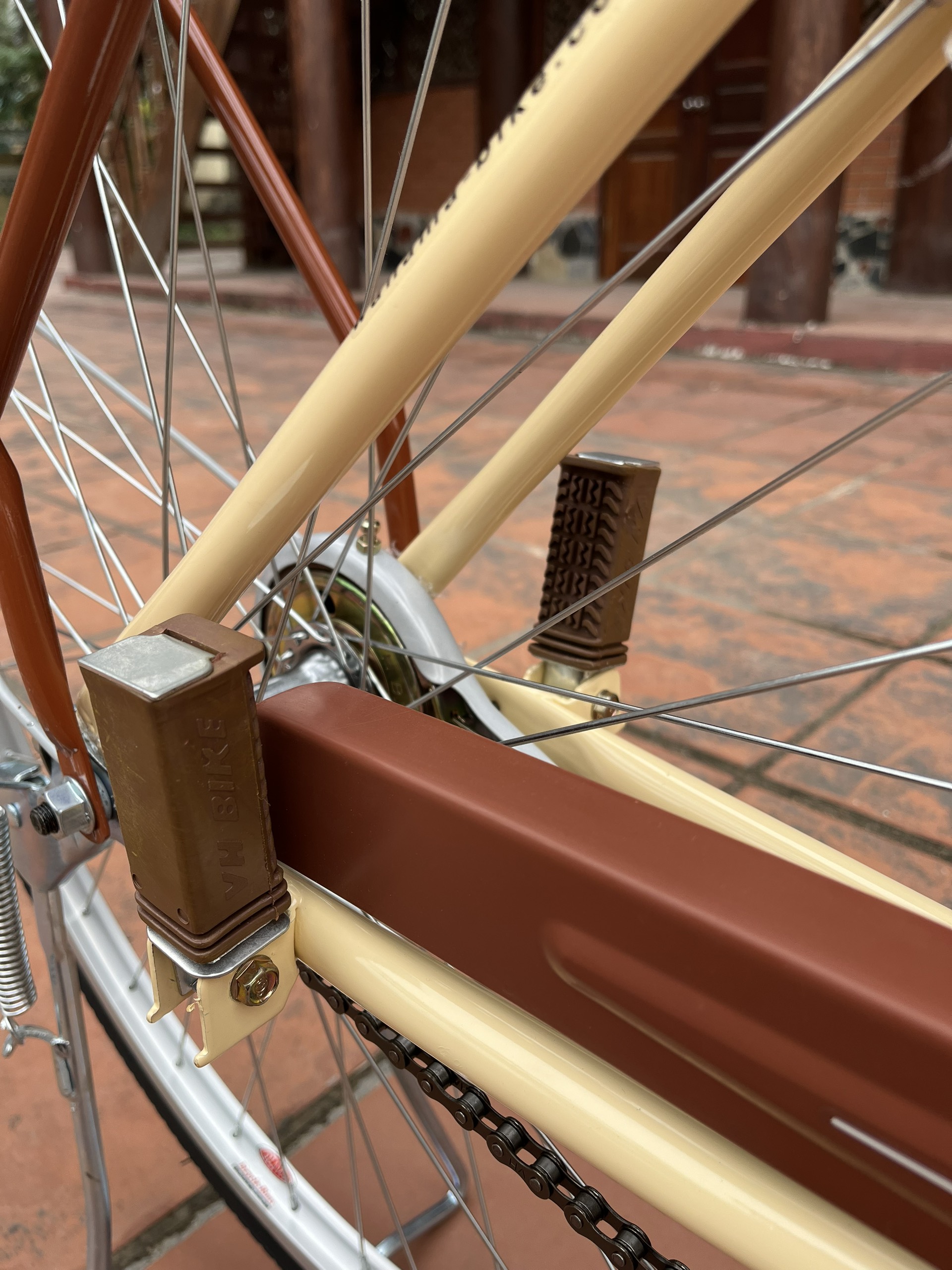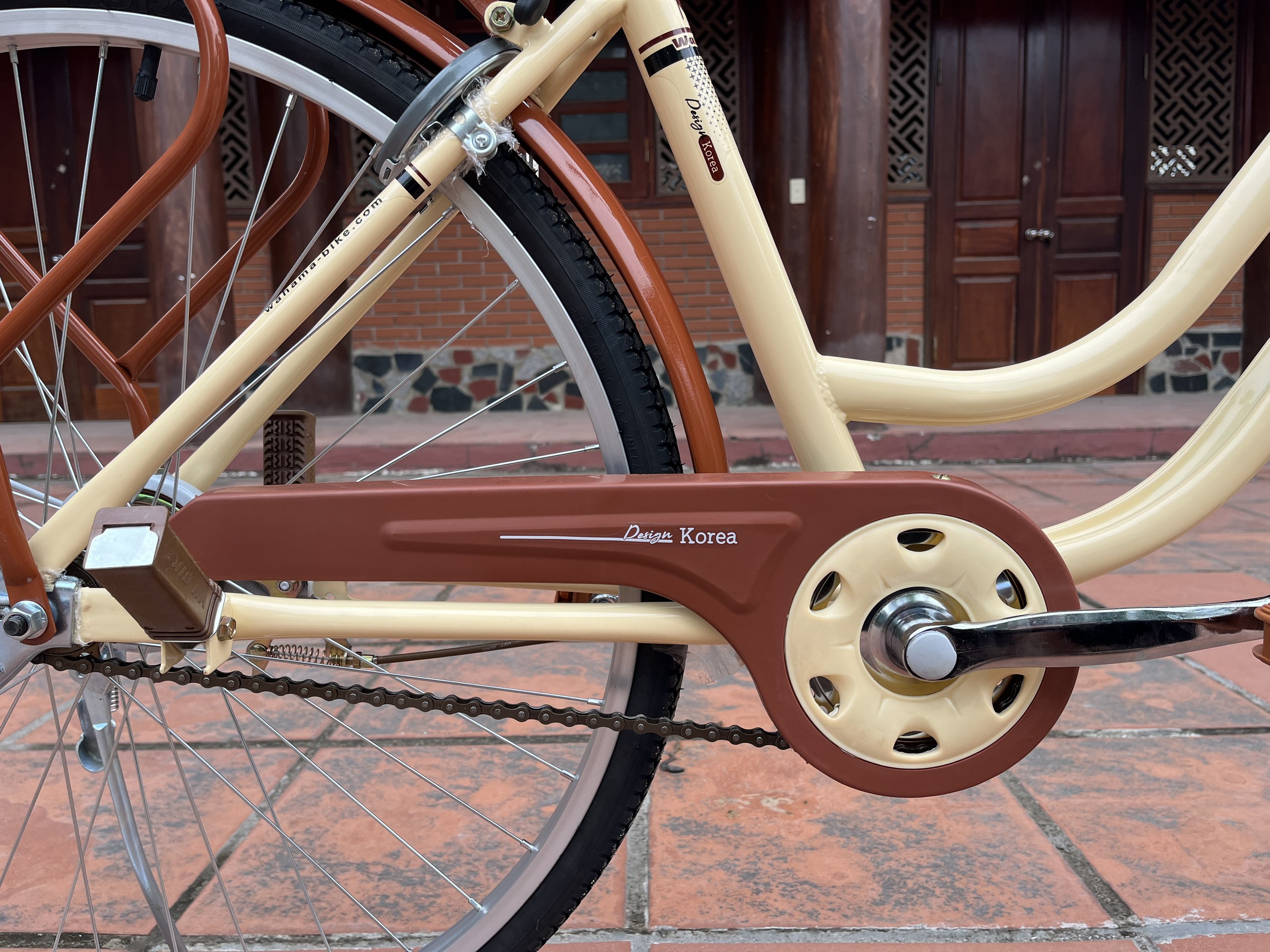 Bàn đạp bằng nhựa với trục bằng théo cứng cáp, đùi đĩa bằng sắt kiên cố, phần đùi được bọc lớp nhựa bảo vệ chống trầy xước và tăng thẩm mỹ cho xe. Xe đạp Wahama KOREA HQ 26 inch có hộp xích bảo vệ tránh bụi bẩn, dễ dàng tháo lắp.