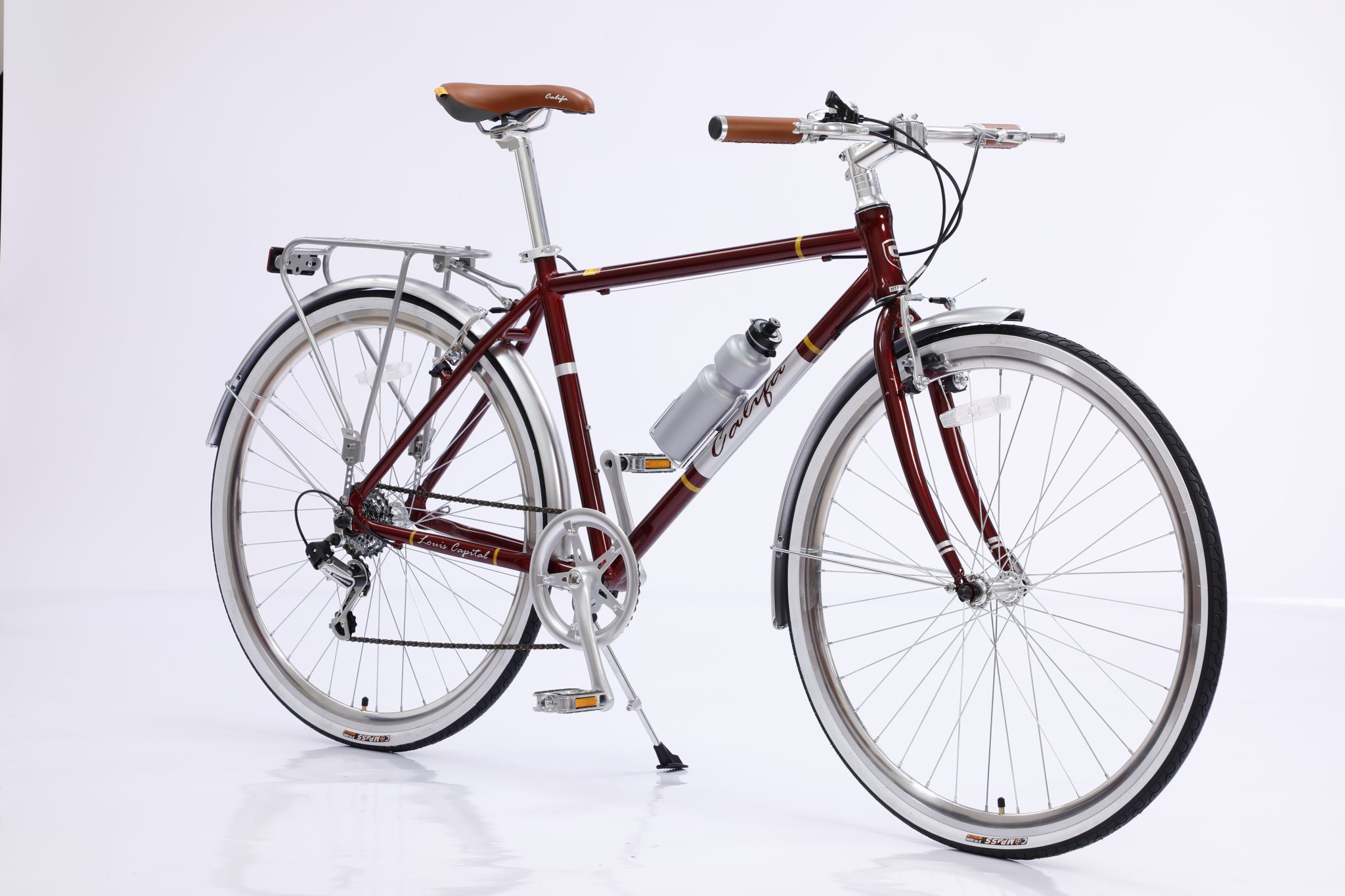CALIFA Louis Capital Kết cấu khung nhôm cùng thiết kế nhỏ nhắn giúp xe linh hoạt khi di chuyển trong phố. Được trang bị bộ đề cho Shimano 7 tốc độ đem đến những chuyển biến linh hoạt và chính xác. Kích cỡ Size 700C Màu sắc xanh , trắng , đỏ , ghi xám Khung: Hợp kim nhôm Càng phuộc xe Phuộc thép Tay lái Nhôm Pô tăng Nhôm Cọc yên Nhôm Yên xe CALIFA Baga Thép Chắn bùn Thép Phanh Phanh đĩa Tay đề choSHIMANO 7 tốc độ Gạt líp choSHIMANO TOURNEY TZ Đùi đĩa 1 tầng nhôm Líp 7 tầng May ơ Bạc đạn Vành xe Vành hợp kim nhôm Lốp 700x32c