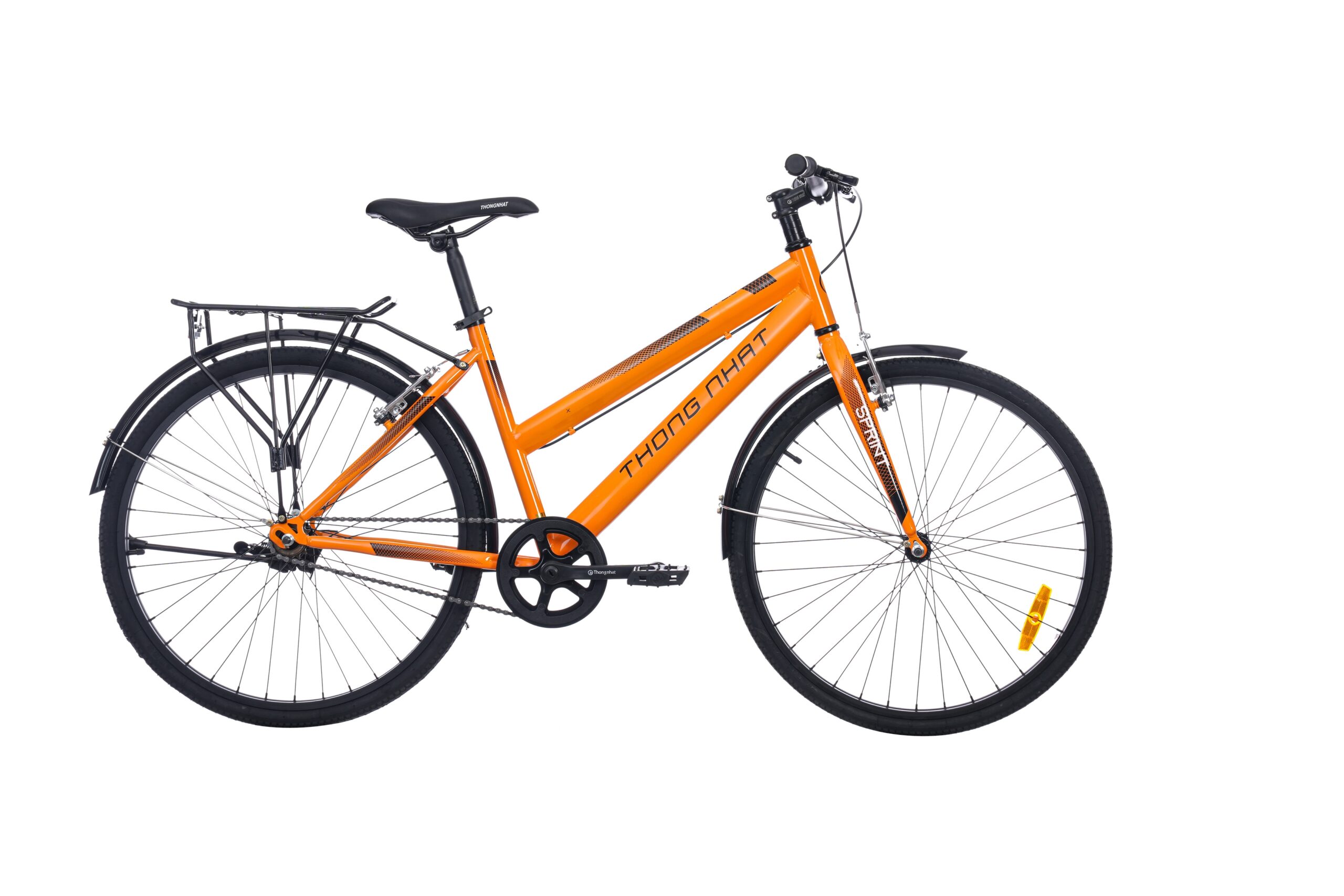 - Thiết kế tối giản, gọn đẹp Xe đạp đường phố thể thao Thống Nhất GN06-26 2.0 có kiểu dáng hiện đại, đường nét tinh tế, tông màu ghi, đen và cam mang đến cho bạn nhiều màu sắc để lựa chọn phù hợp với sở thích của mình. Mẫu xe đạp này ứng dụng công nghệ sơn tĩnh điện giúp duy trì tính thẩm mỹ cao, cho khả năng chống chịu tốt trước các điều kiện môi trường khác nhau. Đáp ứng nhu cầu chơi thể thao, làm phương tiện đi học, đi làm thường ngày của trẻ em và người lớn có chiều cao trung bình khoảng 135 cm - 147 cm. Sườn thép gia công chắc chắn Với khung bằng thép có độ bền cao, giữ cấu trúc xe vững chãi, cho khả năng chịu tải trọng toàn xe lên tới 110 kg. Thiết kế dây phanh được đặt dọc theo sườn xe một cách gọn gàng giúp xe đạp đường phố Thống Nhất trông đẹp mắt và hỗ trợ cho việc bảo dưỡng thuận tiện hơn. Chuyển hướng xe linh hoạt với ghi đông ngang Giống như khung sườn, ghi đông cũng được làm từ thép, vật liệu giúp tay lái cứng cáp kết hợp thiết kế ngang đơn giản giúp bạn kiểm soát hướng đi, lái xe dễ dàng. Bộ phận tay nắm được gắn chặt vào ghi đông, chế tạo cho độ bám cao để bạn nắm ổn định, không sợ trượt tay trong khi lái xe đạp đường phố Hệ thống phanh nhạy bén, sử dụng an toàn Tích hợp phanh vành trước và sau cho phản hồi nhanh mỗi khi bạn thắng xe, nhờ đó giúp đảm bảo cho người lái xe an toàn mỗi khi cần dừng xe lại hoặc xử lý tình huống khẩn cấp. Ngoài ra, với kết cấu đơn giản, hệ thống phanh dễ thay mới và bảo trì, giúp tiết kiệm chi phí và thời gian cho bạn tối đa. Phuộc cứng hạn chế rung lắc Mẫu xe đạp Thống Nhất này được trang bị phuộc trước bằng thép rắn chắc giúp giữ cho xe di chuyển ổn định từ mặt đường phẳng cho đến những đoạn đường gồ ghề, khó di chuyển. Yên xe mềm mịn, ngồi thoải mái mọi lúc Chất liệu da cho yên xe ngồi êm ái trong suốt thời gian bạn lái xe, dễ dàng lau chùi khi bám bẩn. Yên phụ cứng cáp, chịu lực tốt, đáp ứng tải trọng 30 kg cho bạn chở hàng hóa hoặc người tiện lợi. Di chuyển mượt mà với bánh xe 26 inch Cả hai bánh xe đều có kích thước 24 inch phù hợp với cấu trúc của toàn bộ xe khi bạn lái nhanh hay chậm đều hoạt động ổn định, nhịp nhàng. Bộ phận lốp xe 24"x1 3/8 sử dụng bền, trên bề mặt có nhiều rãnh giúp tăng tính ma sát cho quá trình lái xe thêm vững vàng. Vành xe bằng hợp kim nhôm có tính chống oxy hóa, chống ăn mòn tốt, khối lượng nhẹ nên cho tổng thể xe nhẹ hơn, di chuyển dễ dàng hơn khi đi qua những địa hình khó khăn. Tiện ích đi kèm Sử dụng đèn phản quang giúp phản chiếu ánh sáng, bảo vệ người dùng tốt hơn khi đi qua những đoạn đường khuất trong bóng tối. Có chân chống thiết kế ở vùng bánh xe sau giúp cho xe tự đứng vững, không bị nghiêng, ngã mà không cần bất kỳ điểm tựa nào. Thông tin chung