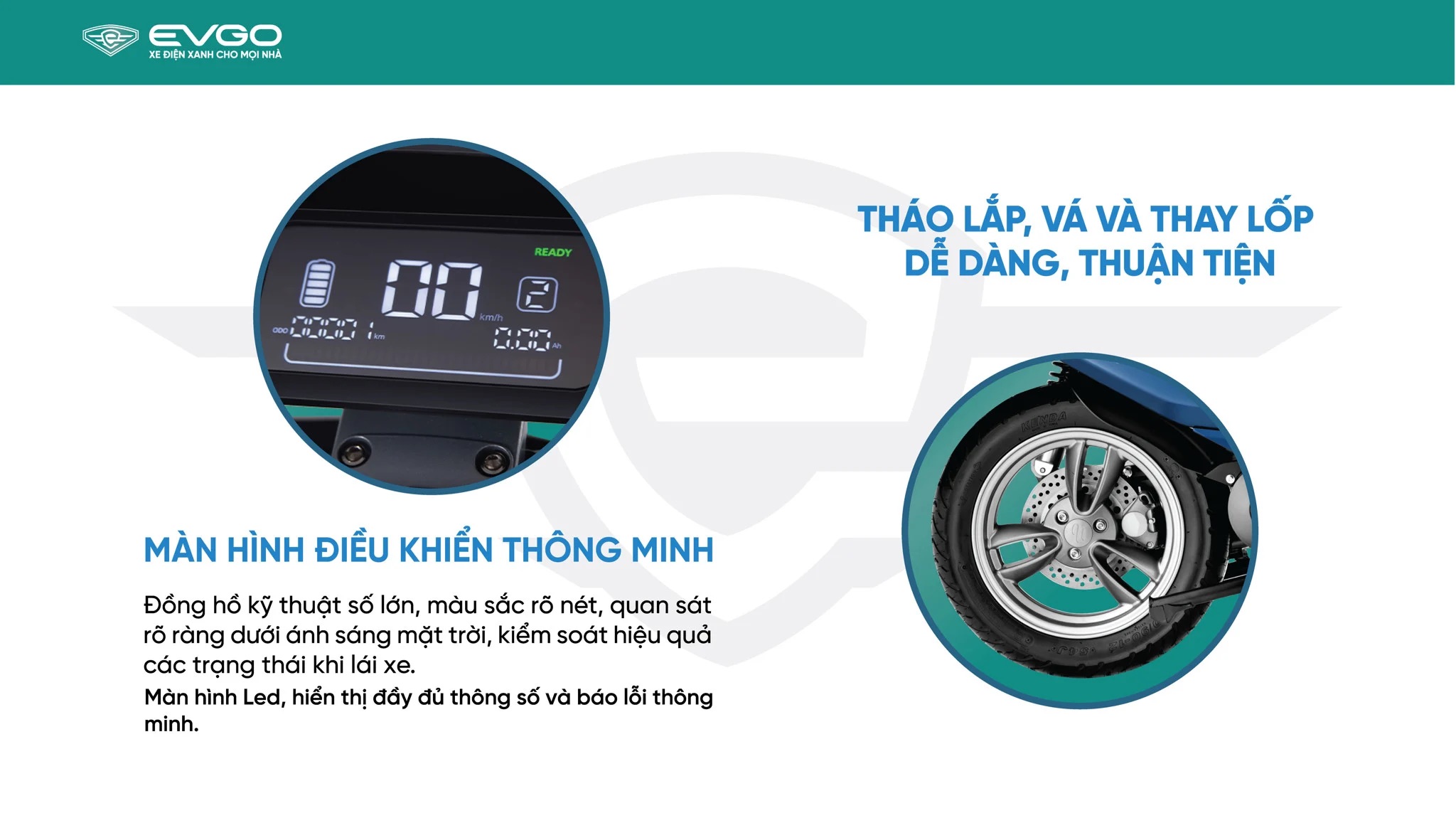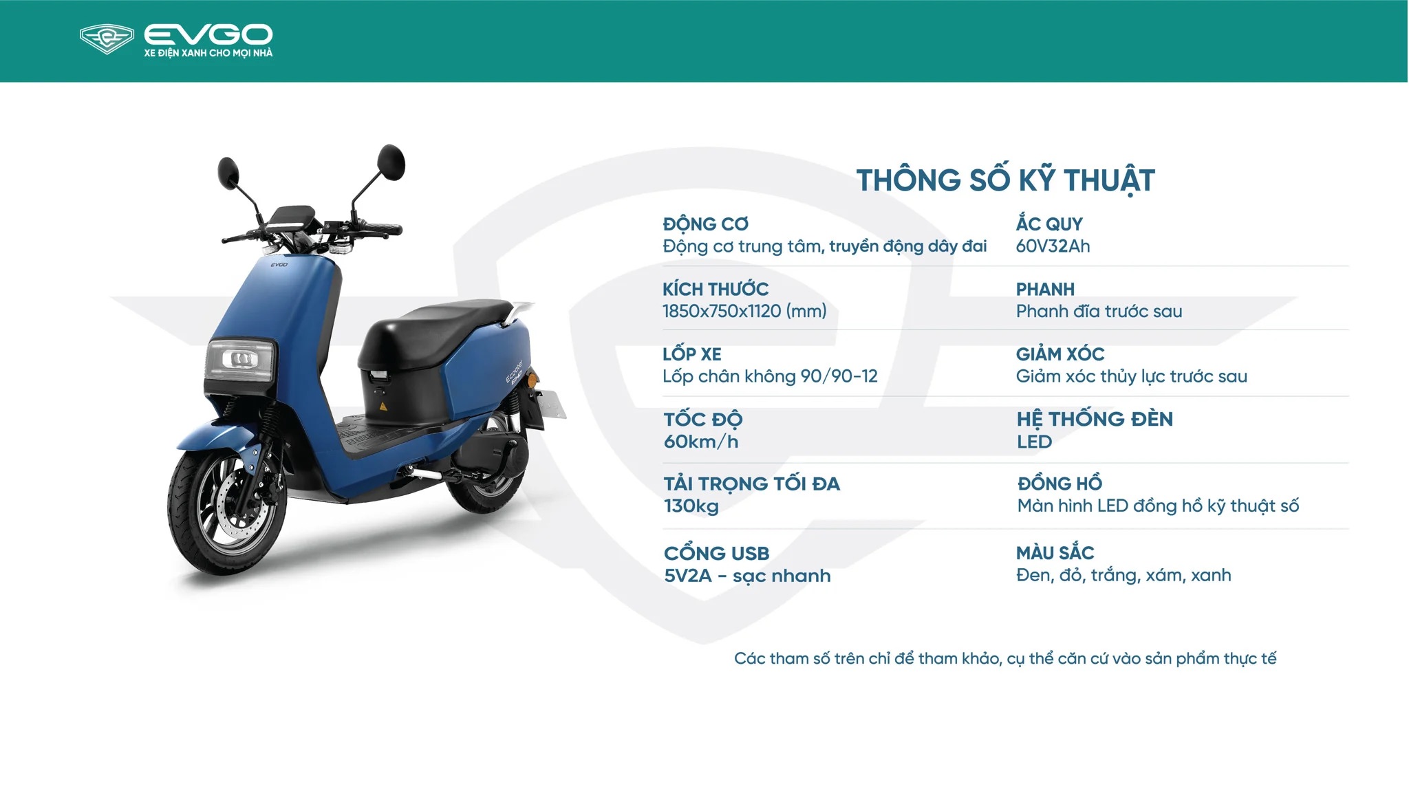 GIÁ XE NIÊM YẾT: 28,500,000 VNĐ - GIÁ XE CHƯA BAO GỒM PIN Đặt cọc xe trị giá 5Trđ + Miễn phí giao hàng + Tặng kèm Mũ bảo hiểm & áo phông EVGO. Nhận