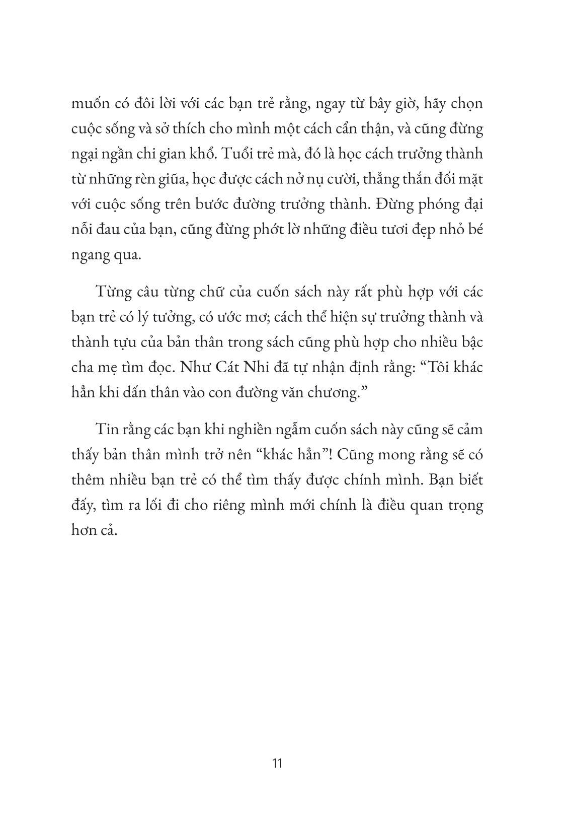 Những câu chuyện có thật ngoài đời thực cùng với giọng văn sắc sảo nhưng cũng không kém phần hài hước và ấm áp của Văn Cát Nhi, cuốn sách “Xé vài trang thanh xuân, đổi lấy một bản thân nỗ lực” sẽ giúp những người trẻ đang hoang mang, mơ hồ nhìn ra chân lý của cuộc sống mà vẫn tin yêu cuộc đời, đồng thời truyền cảm hứng để người trẻ trưởng thành hơn thông qua thông điệp: “Dù cuộc đời có cả ngàn lý do khiến bạn khóc thì bạn cũng phải viện ra cả vạn lý do để cười.”