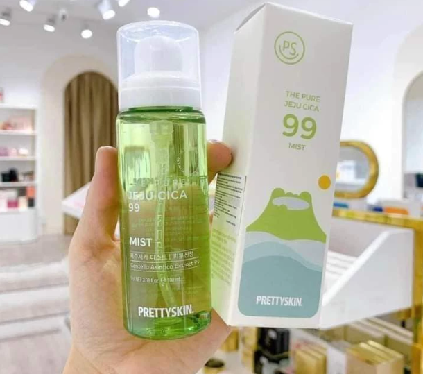 Xịt khoáng rau má Pretty Skin The Pure Jeju Cica 99 Mist 100ml REVIEW