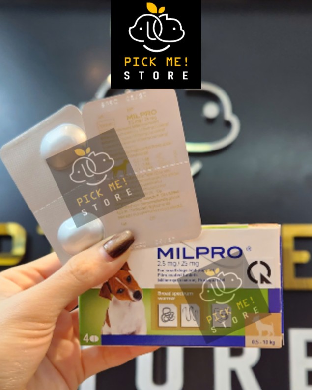 Milpro là th.uốc tẩy giun phổ rộng có chứa milbemycin và praziquantel dưới dạng viên nén với lớp phủ ngoài có hương vị thịt ngon miệng, có tác dụng bảo vệ chống lại các loại GIUN, SÁN ở Chó.