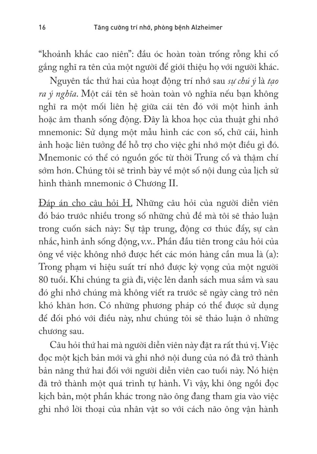 Cuốn sách này không chỉ dành cho những ai lo lắng về trí nhớ, mà còn cho sinh viên, chuyên gia và những người ham học hỏi muốn nâng cao khả năng tư duy. Với sự kết hợp hài hòa giữa kiến thức khoa học, câu chuyện hấp dẫn và chiến lược thực tế, “Tăng cường trí nhớ, phòng bệnh Alzheimer” mang đến cho người đọc những công cụ cần thiết để phát triển và bảo vệ tài sản trí nhớ quý báu của mình.