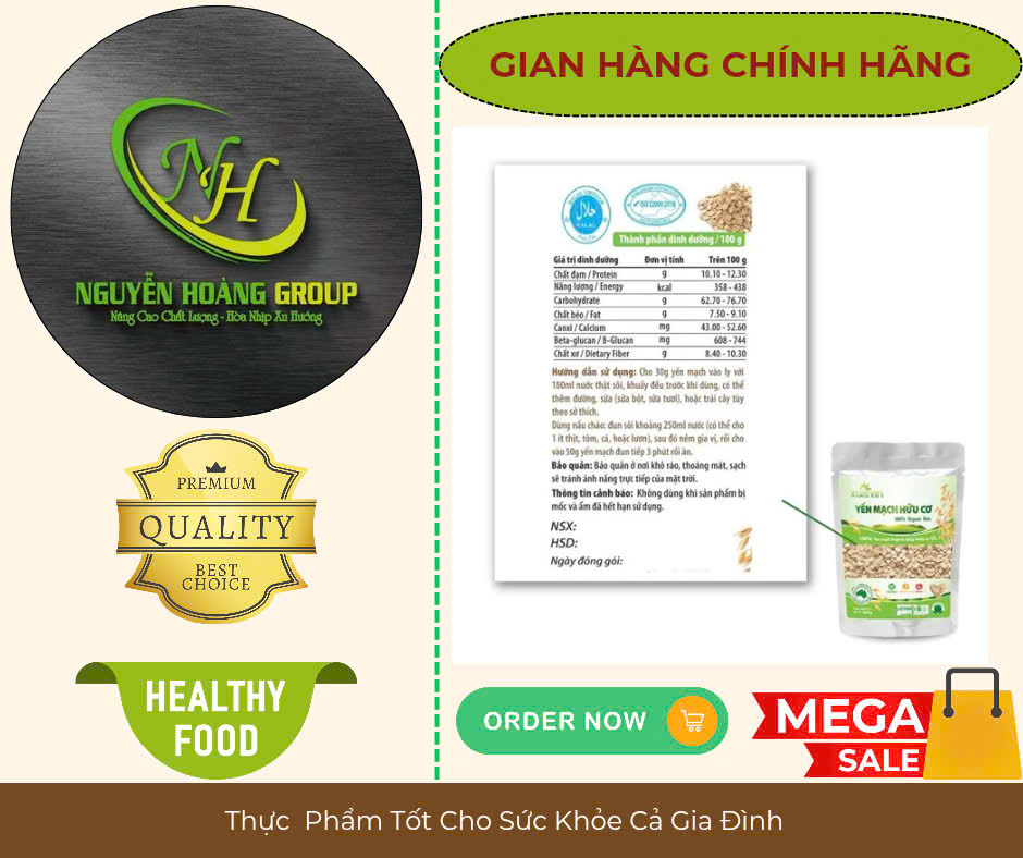 GIỚI THIỆU Yến mạch ăn kiêng GUfoods là loại ngũ cốc với hàm lượng chất xơ và giá trị dinh dưỡng vượt trội, bổ sung lý tưởng cho thực đơn ăn kiêng thường ngày. Sản phẩm đặc biệt phù hợp với người tập gym, tập thể thao, eat clean, hỗ trợ giảm cân và giàu lợi ích sức khoẻ. ĐẶC ĐIỂM NỔI BẬT ✓ Giàu chất xơ và dinh dưỡng tốt, nhiều lợi ích sức khoẻ từ yến mạch ✓ Đặc biệt phù hợp cho người tập gym - thể thao, ăn kiêng, thực dưỡng, eat clean ✓ Nguyên liệu sạch, nhập khẩu Úc ✓ Không phụ gia, không chất bảo quản THÀNH PHẦN 100% Yến mạch nguyên hạt cán mỏng. GIÁ TRỊ DINH DƯỠNG Yến mạch cung cấp nhiều chất xơ, protein, vitamin, các hợp chất chống oxy hoá và các khoáng chất có lợi cho sức khỏe. LỢI ÍCH SỨC KHỎE 1. Hỗ trợ quá trình ăn kiêng - Chất xơ trong yến mạch giúp tiêu hóa lâu hơn và duy trì cảm giác no trong một khoảng thời gian dài, hạn chế cảm giác thèm ăn. 2) Tốt cho bệnh nhân tiểu đường type 2 - Bệnh tiểu đường type 2 được đặc trưng bởi sự điều chỉnh bất thường của lượng đường trong máu, thường là do giảm độ nhạy hormone insulin. Beta glucan trong yến mạch có tác dụng giúp kiểm soát lượng đường trong máu bằng cách điều chỉnh đáp ứng glucose và insulin sau bữa ăn 3) Tốt cho hệ tiêu hoá - Lượng chất xơ dồi dào có trong yến mạch giúp điều chỉnh chức năng ruột, giảm các triệu chứng táo bón và viêm đại tràng. 4) Tốt cho tim mạch - Các nghiên cứu đã chứng minh rằng yến mạch có thể làm giảm mức cholesterol, qua đó giúp hỗ trợ tích cực cho sức khoẻ tim mạch. HƯỚNG DẪN SỬ DỤNG Làm chín và ăn kèm sữa chua / sữa tươi; nấu thành cháo / súp; hoặc dùng làm nguyên liệu chế biến granola, ngũ cốc, các loại bánh. HƯỚNG DẪN BẢO QUẢN Bảo quản nơi khô mát, tránh ánh nắng trực tiếp. KHỐI LƯỢNG TỊNH
