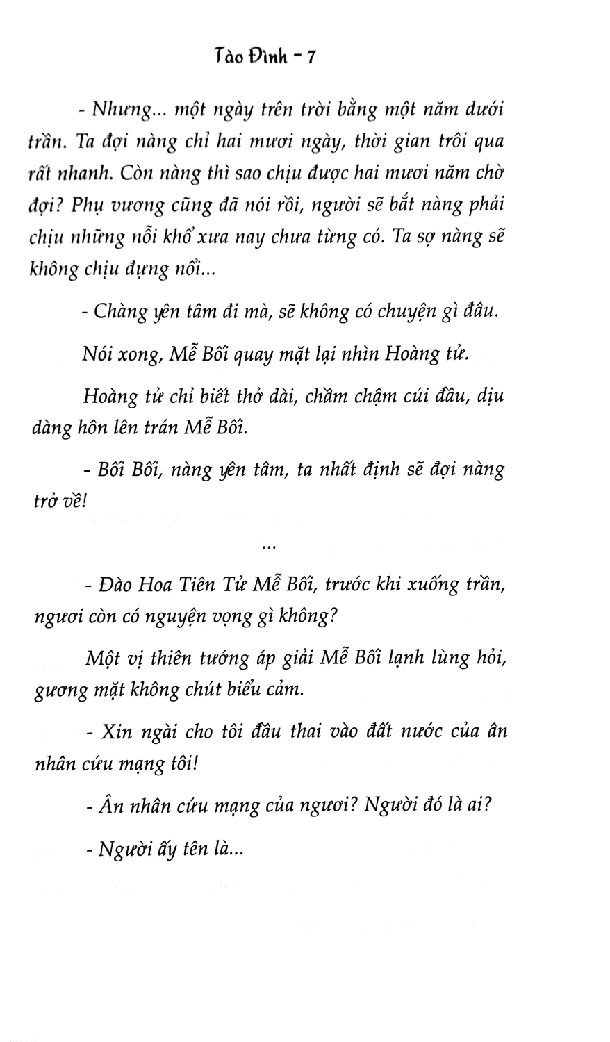 Trong khi Cửu Hoàng Tử lưu luyến thì Mễ Bối lại coi hai mươi ngày xuống trần là cơ hội để nàng báo đáp ân nghĩa với ân nhân Mạc Ngôn Hy.